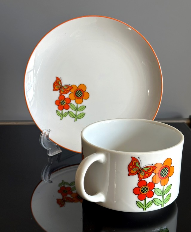 ミッドセンチュリー カップ&ソーサー ケーキ皿 ヴィンテージ トリオ レトロポップ