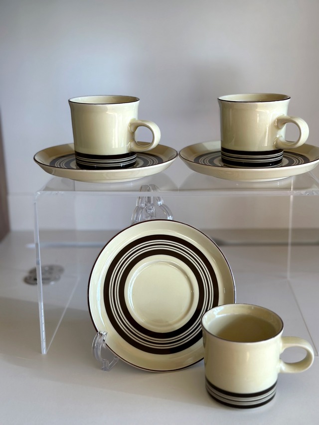 美品 ヴィンテージマグ カップ&ソーサー サークルライン 3客セット 昭和レトロ