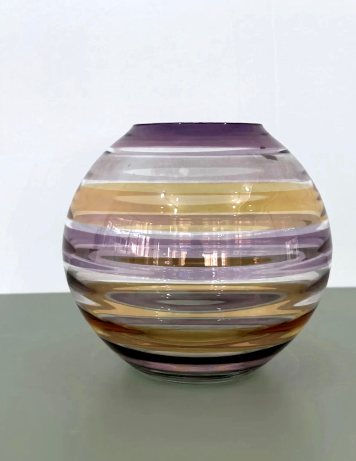 ヴィンテージ ボヘミアガラス花瓶 マルチカラーフラワーベース ラウンドベース