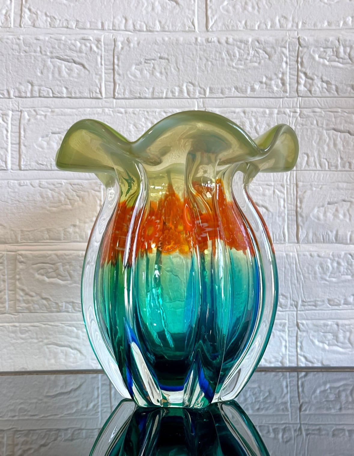 レトロポップ フリル花瓶 マーブルフラワーベース 花柄 70s ヴィンテージ