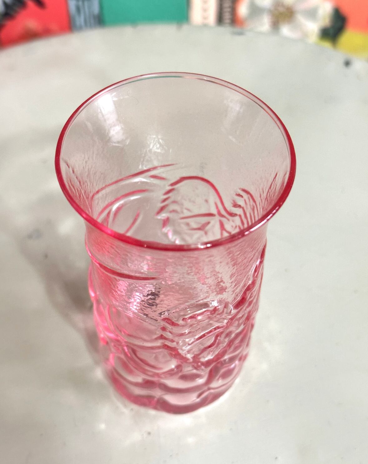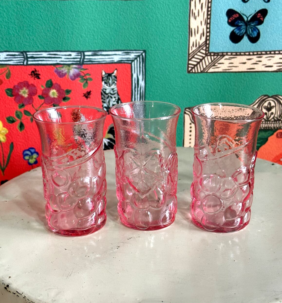 昭和レトロ ぶどう柄グラス 3セット ピンクガラス 曽我ガラス コースター付
