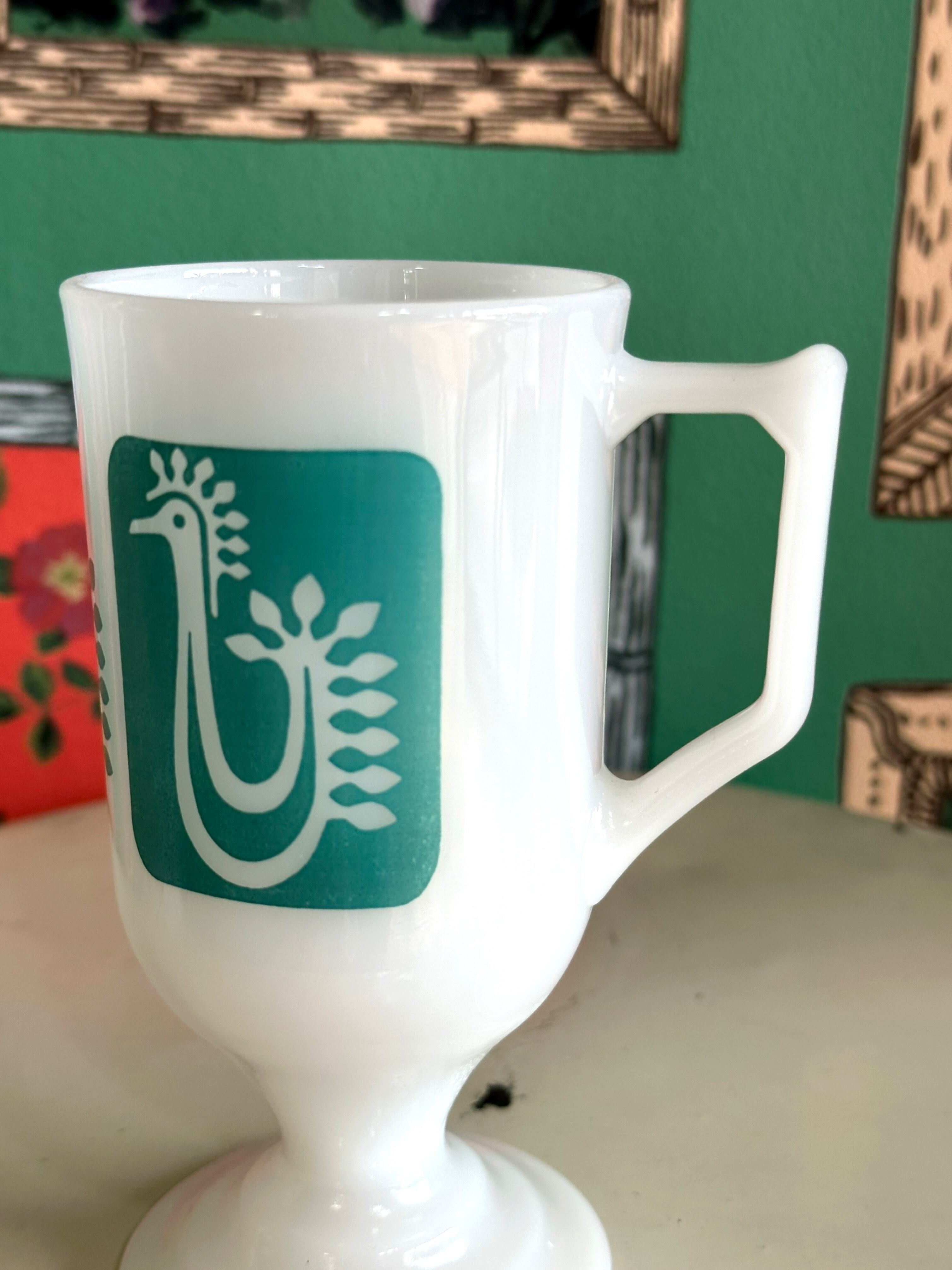 ヴィンテージ フッテッドマグ フェデラル ハイステムマグ ミルクガラス レア