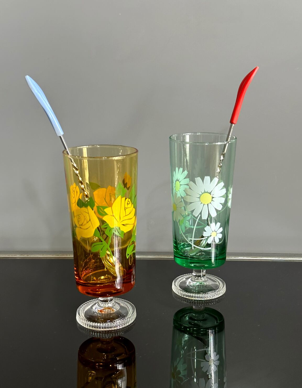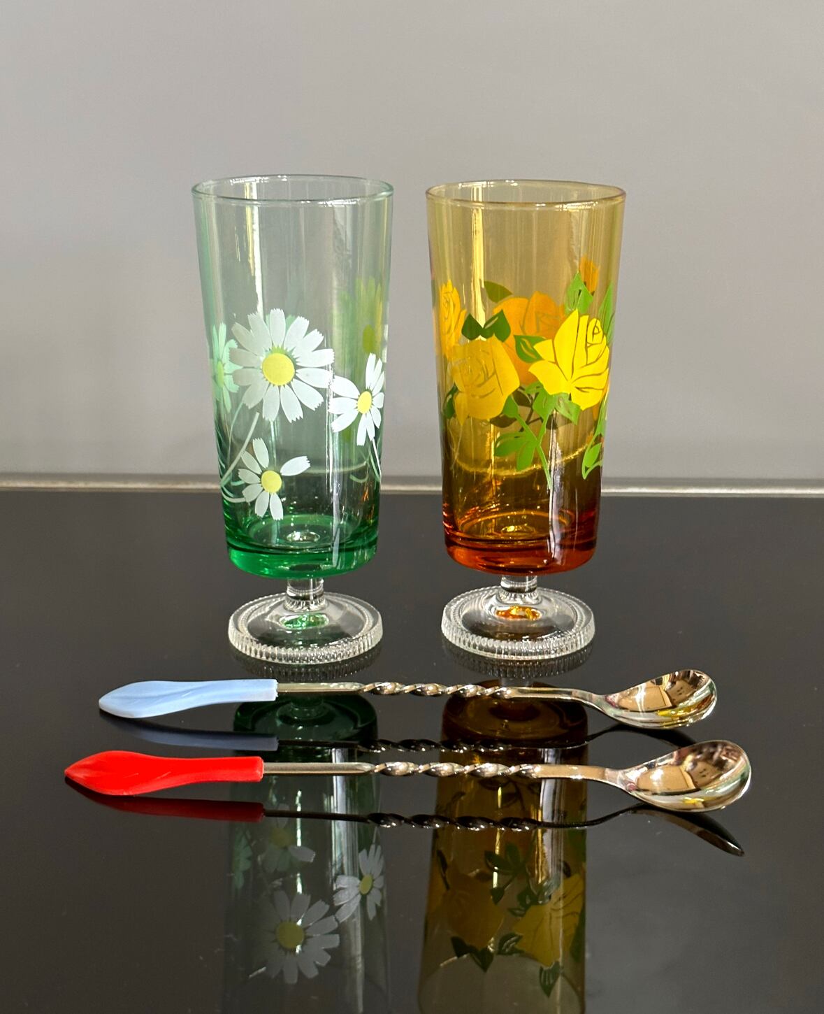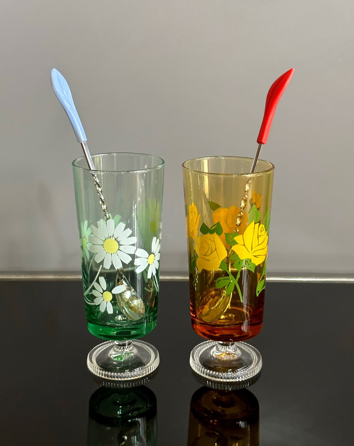 アデリアレトロ 脚付きグラス ねじねじスプーン付き 2客セット レトロポップ