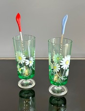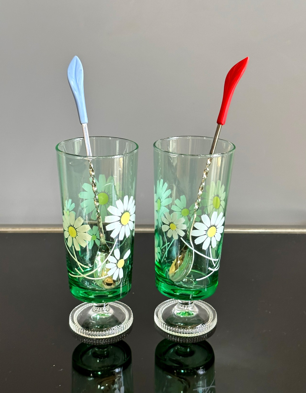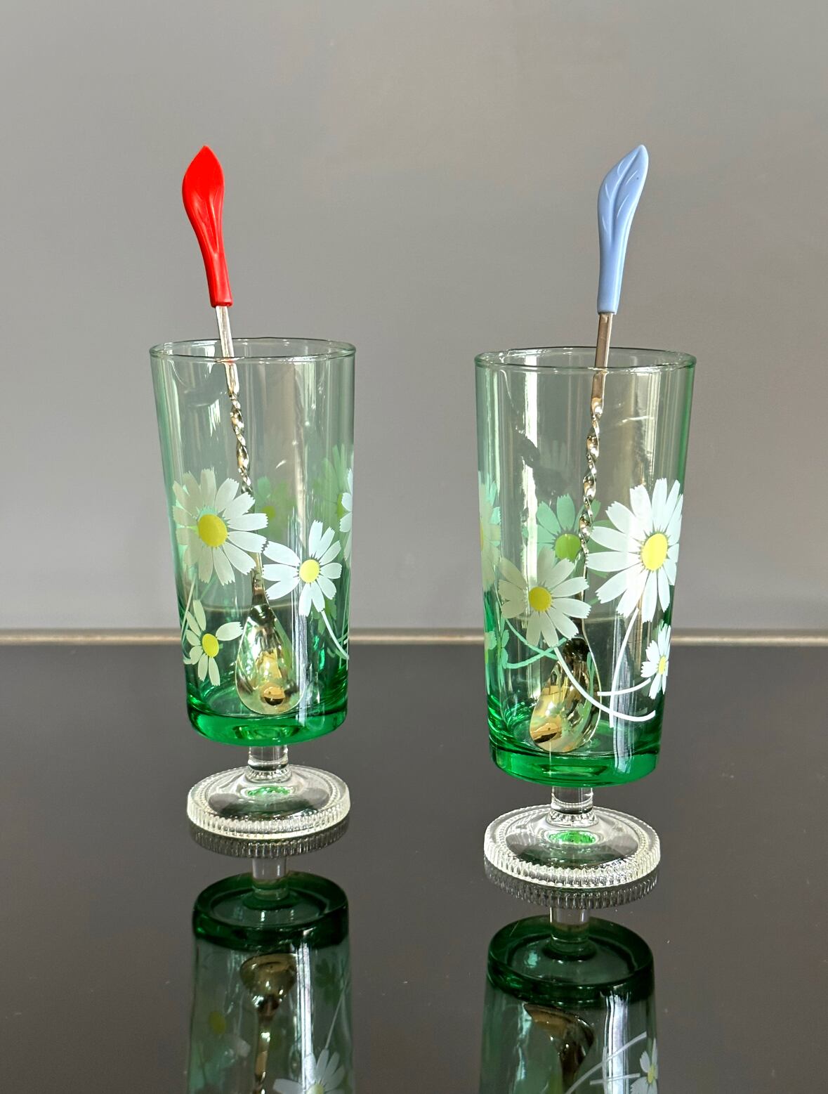 昭和レトロポップ ねじねじスプーン 脚付きグラス 2客セット デイジー 野ばな