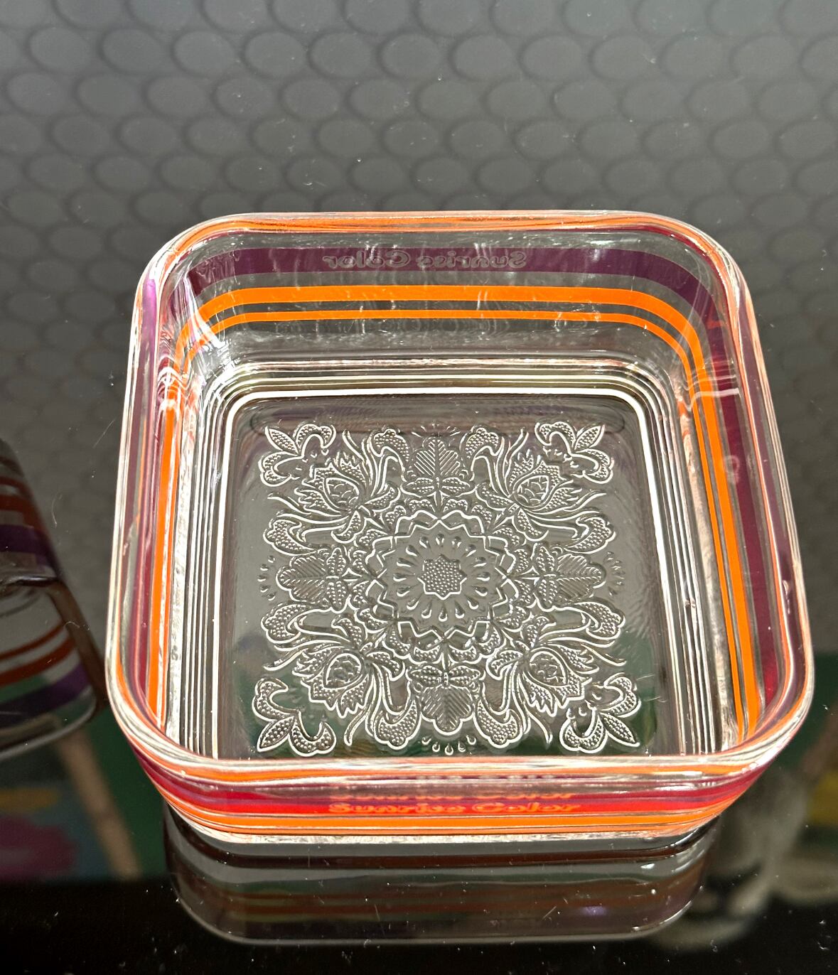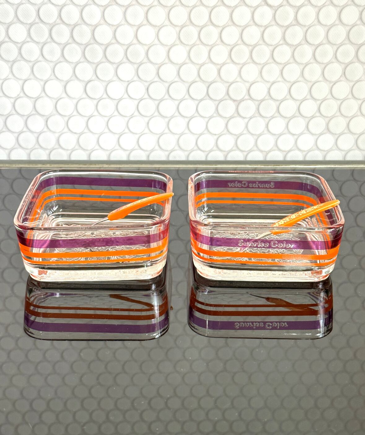 ミッドセンチュリー 花柄ガラスボウル ガラス小鉢 姫フォーク付 2セット