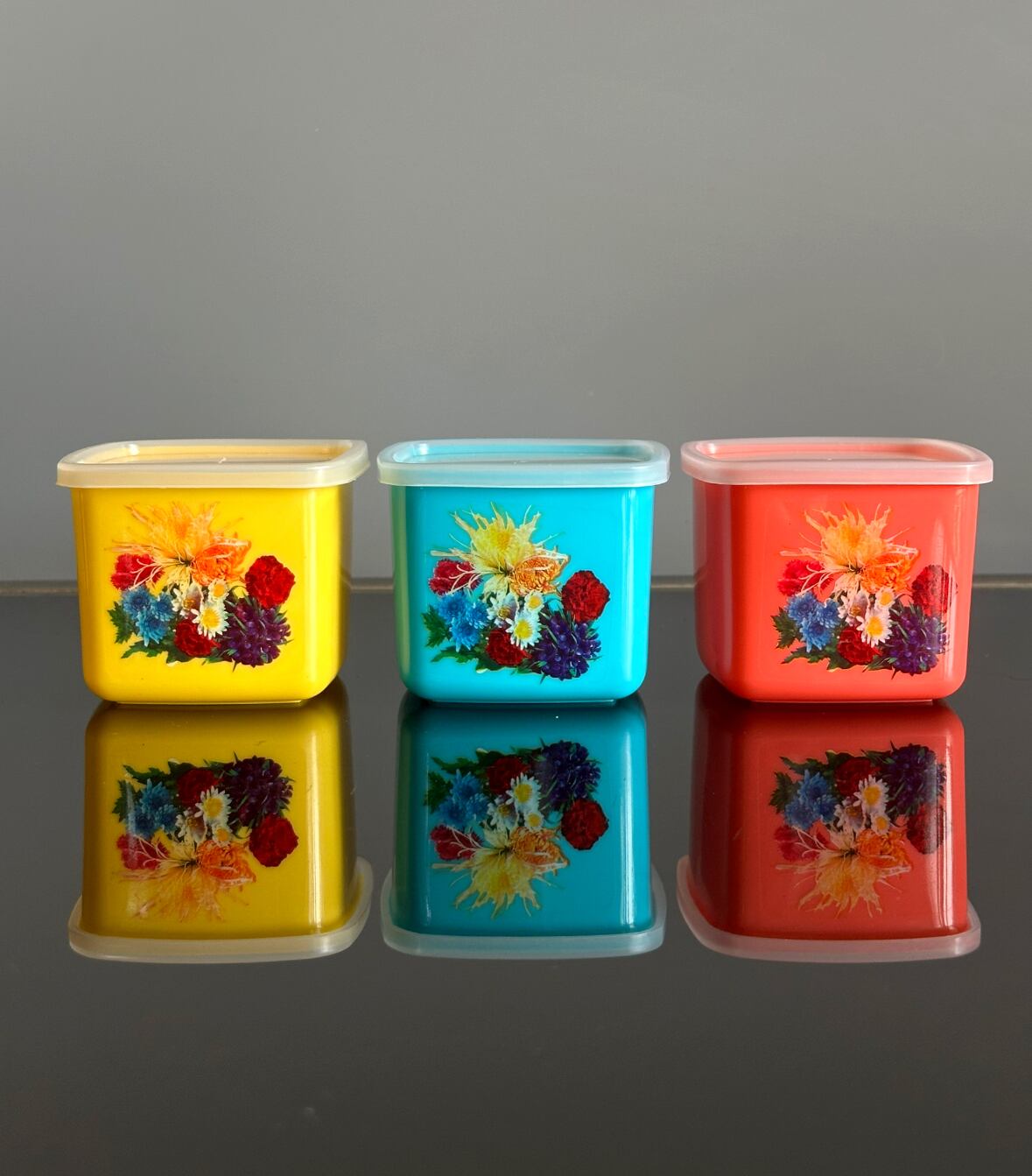 ¥2,980 レトロポップ タッパー 花柄ポット 蓋付きケース 小物入れ 保存容器 3セット