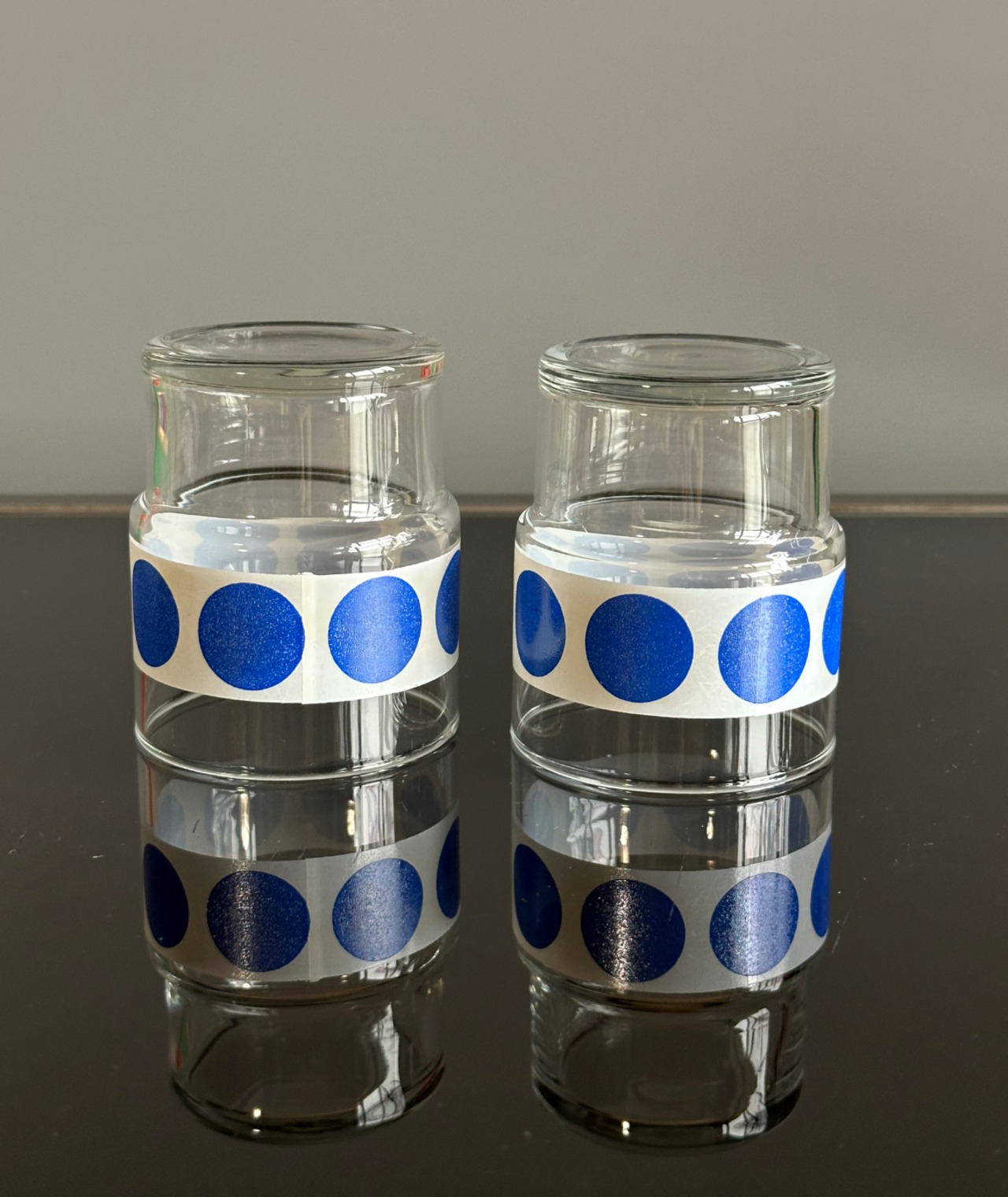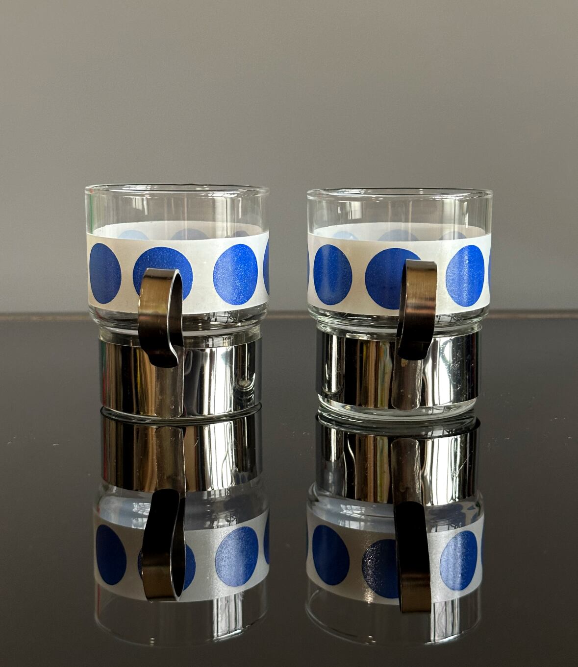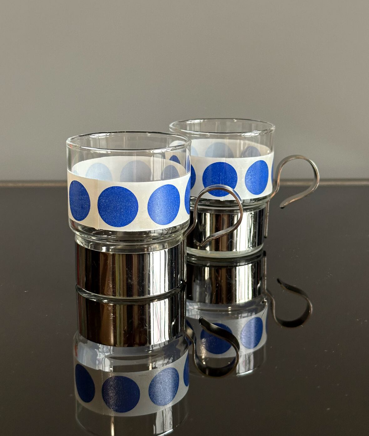 レトロな模様の取手付きドット柄グラス