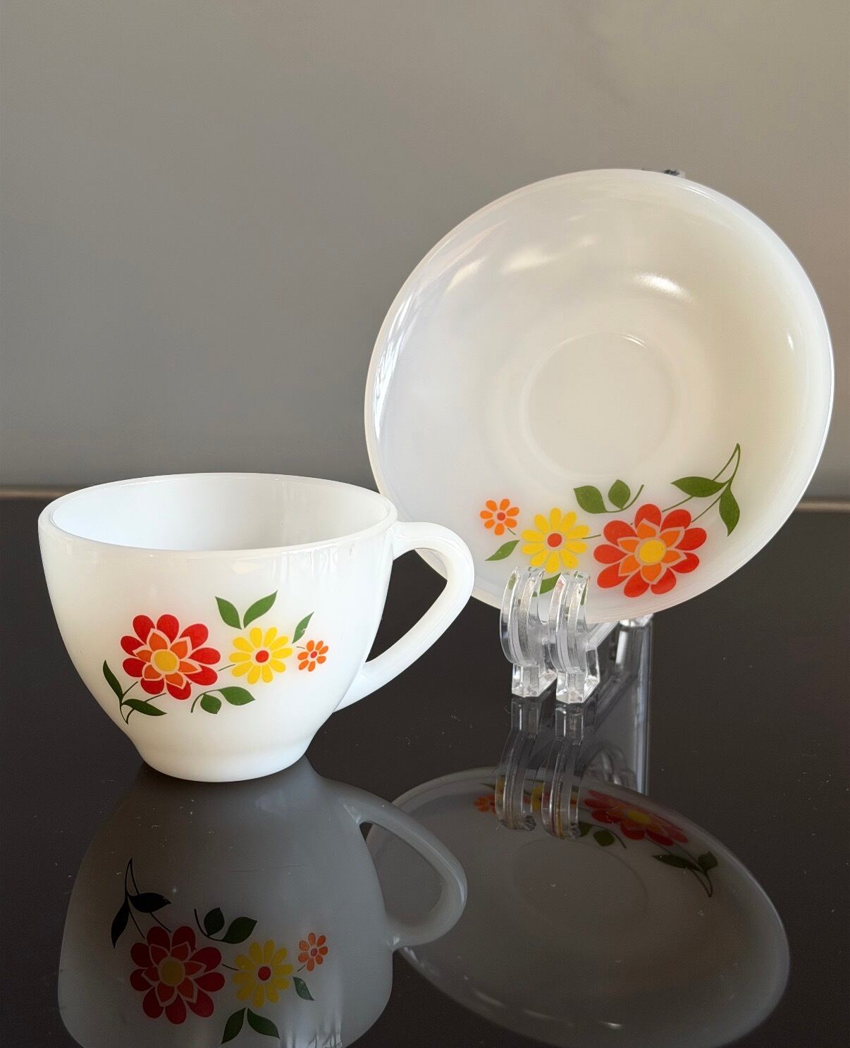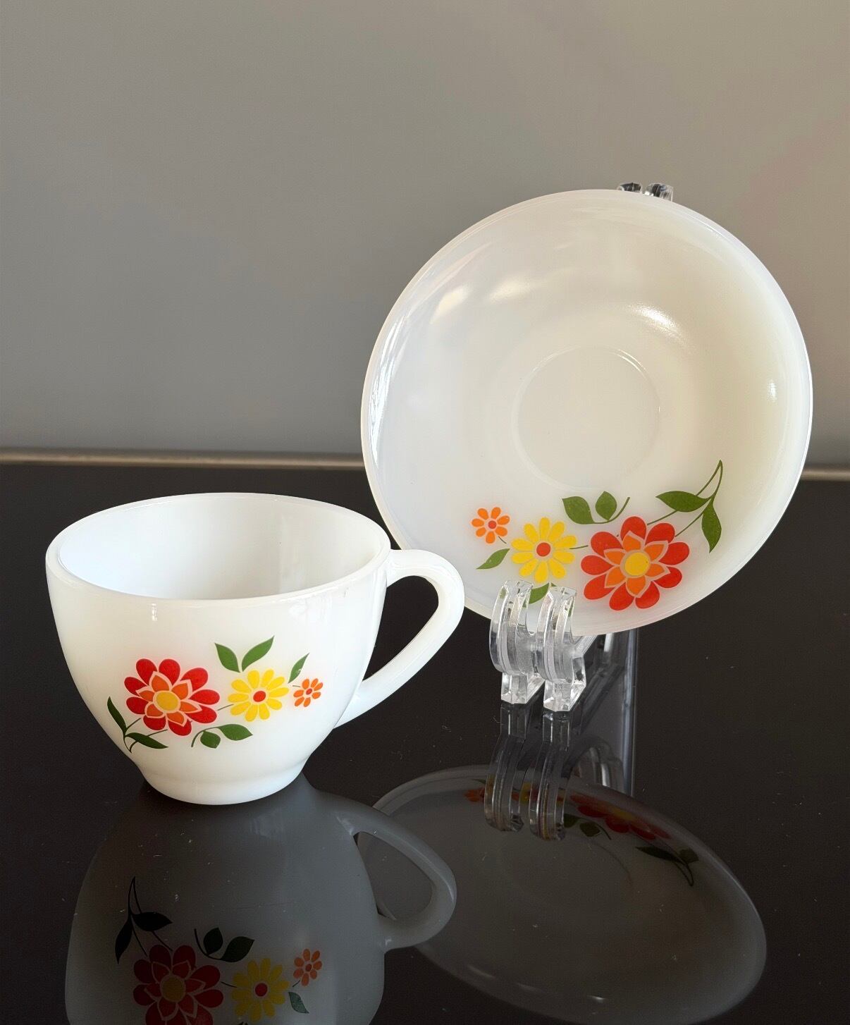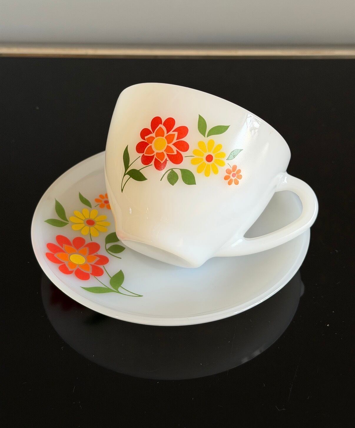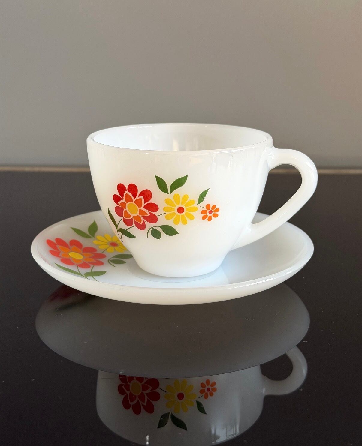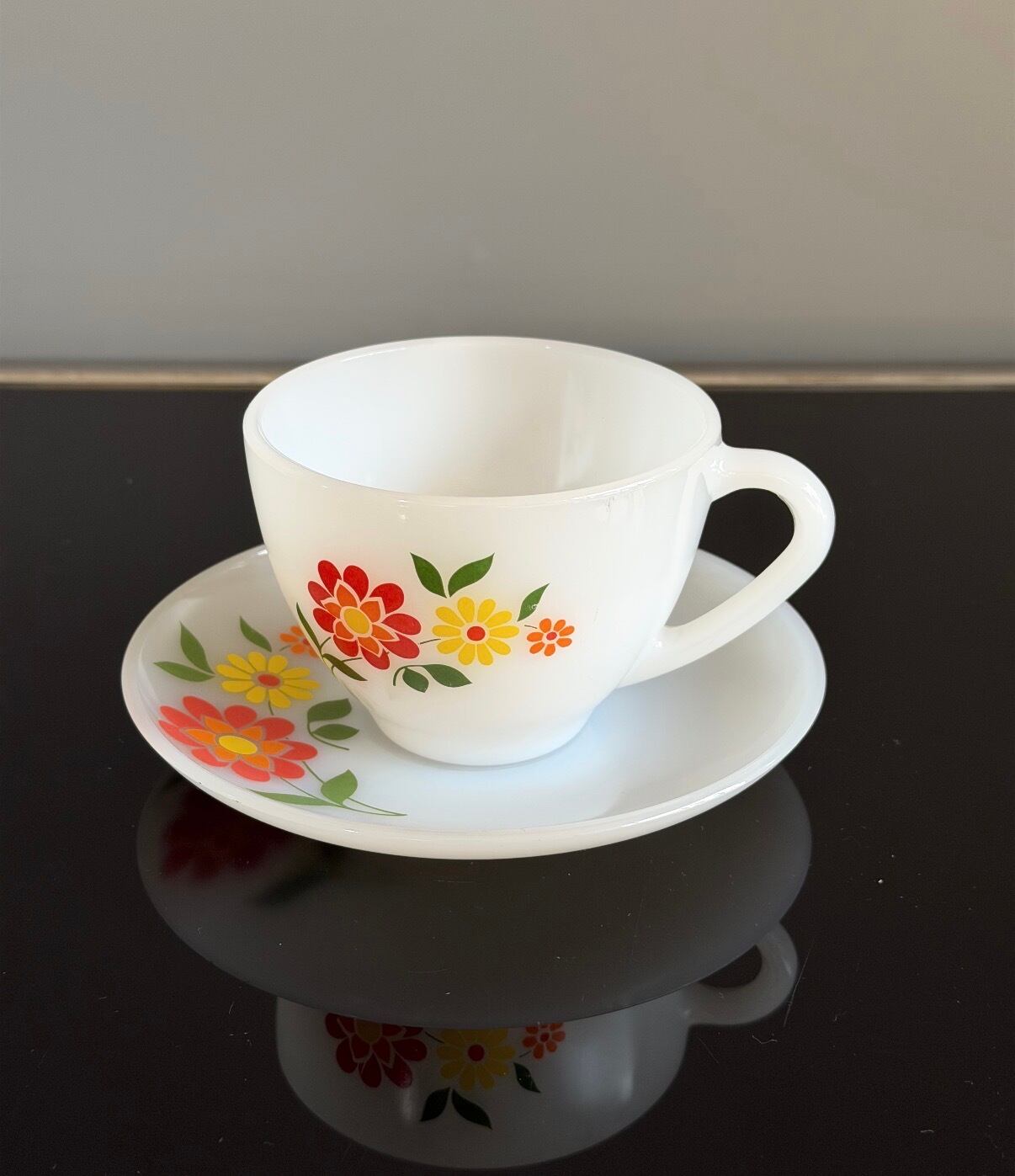 ミルクガラスのカップ&ソーサーセット。