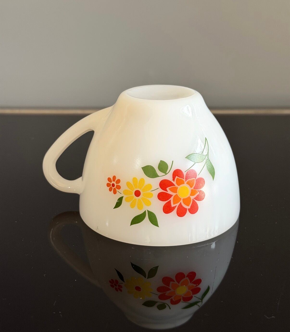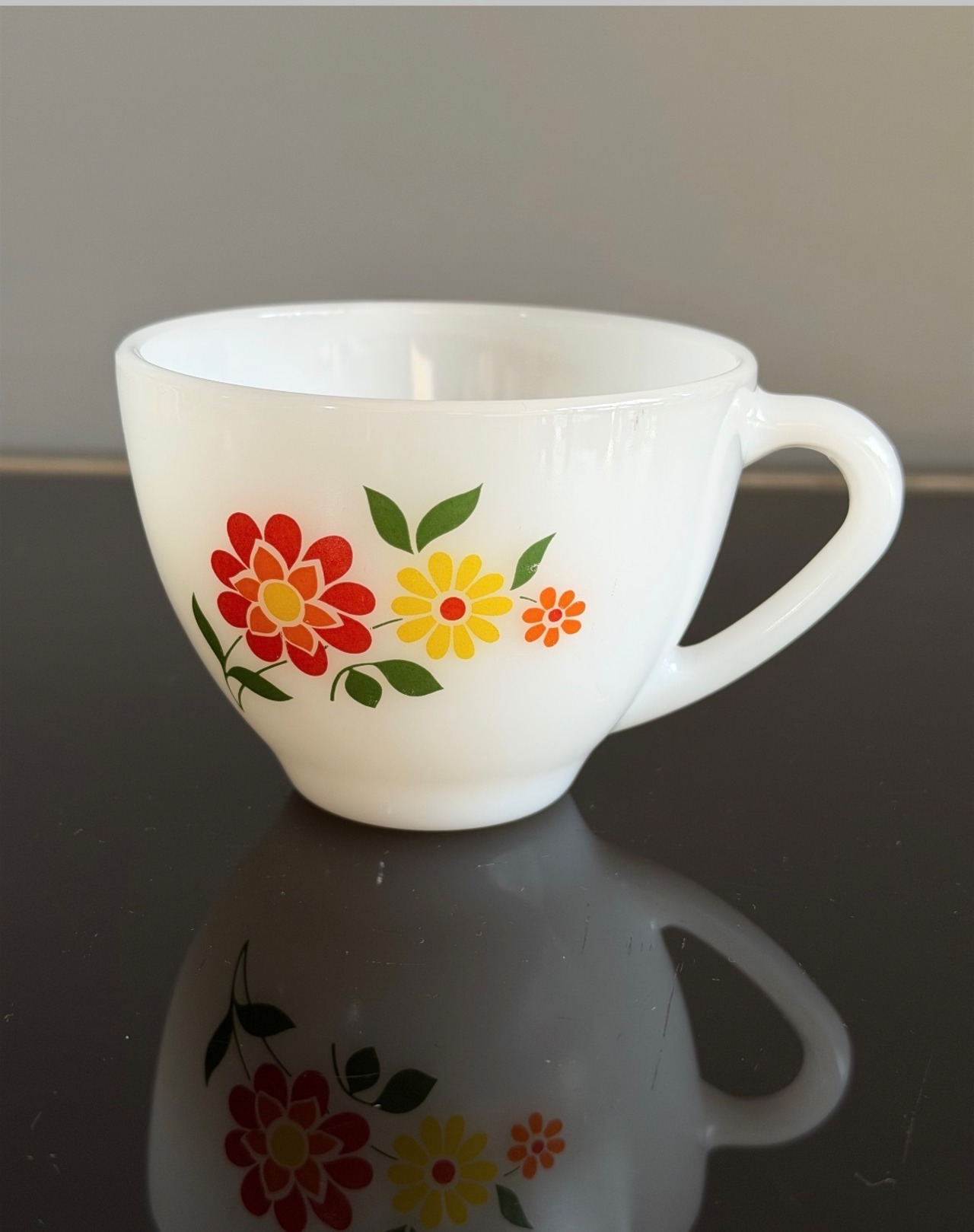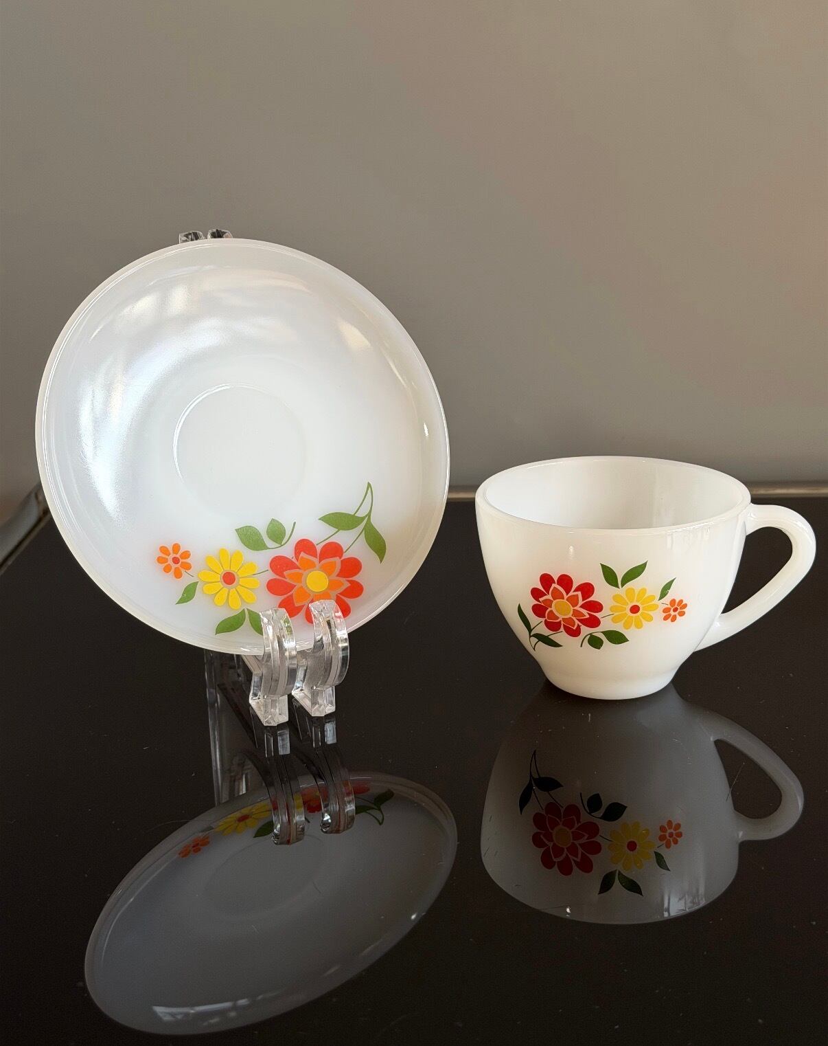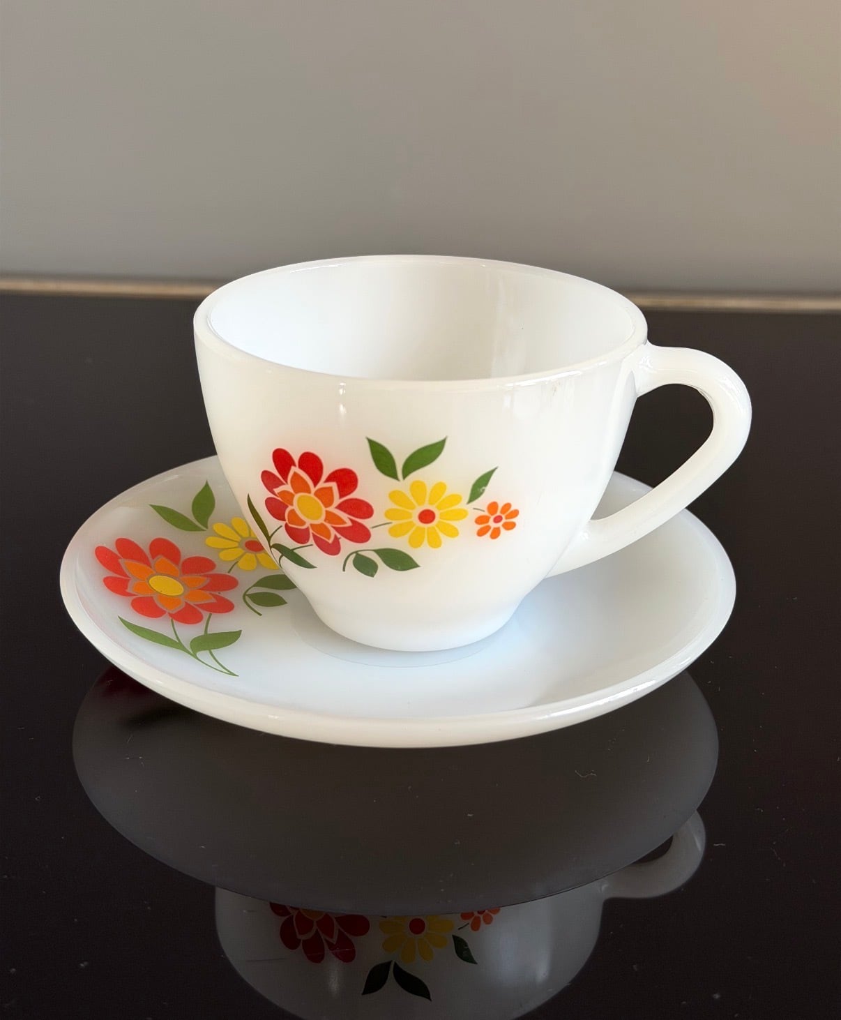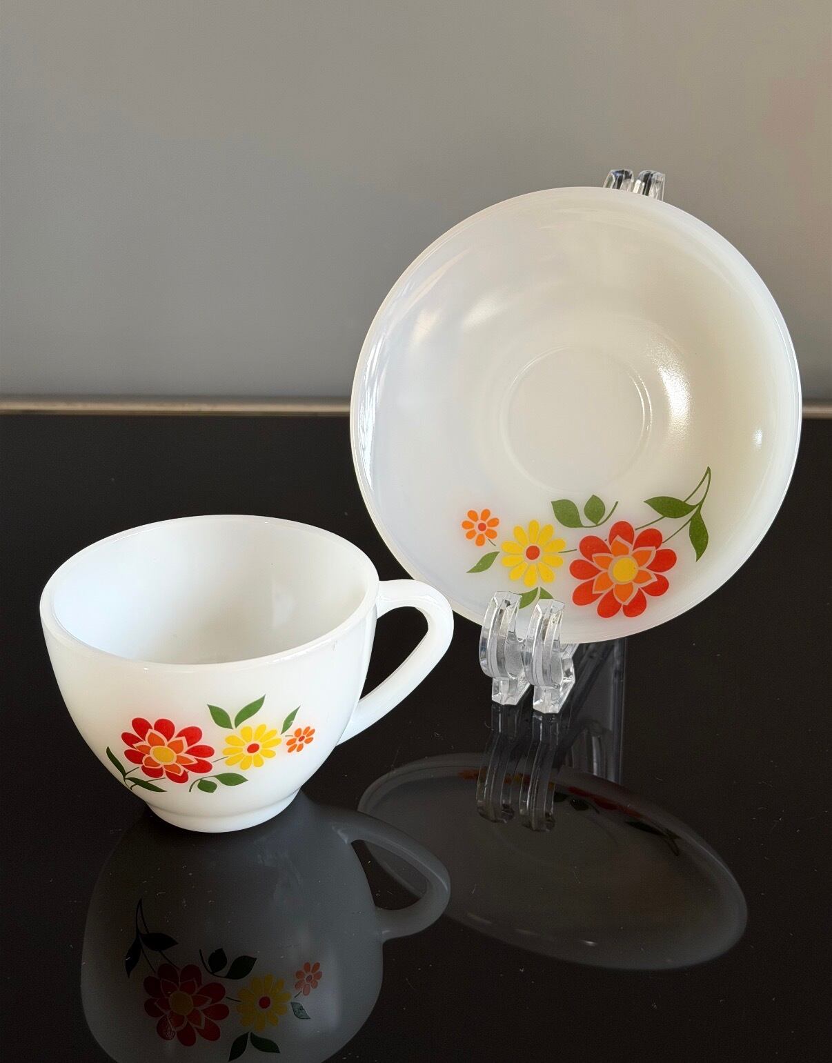ミルクガラスのカップ&ソーサーセット。