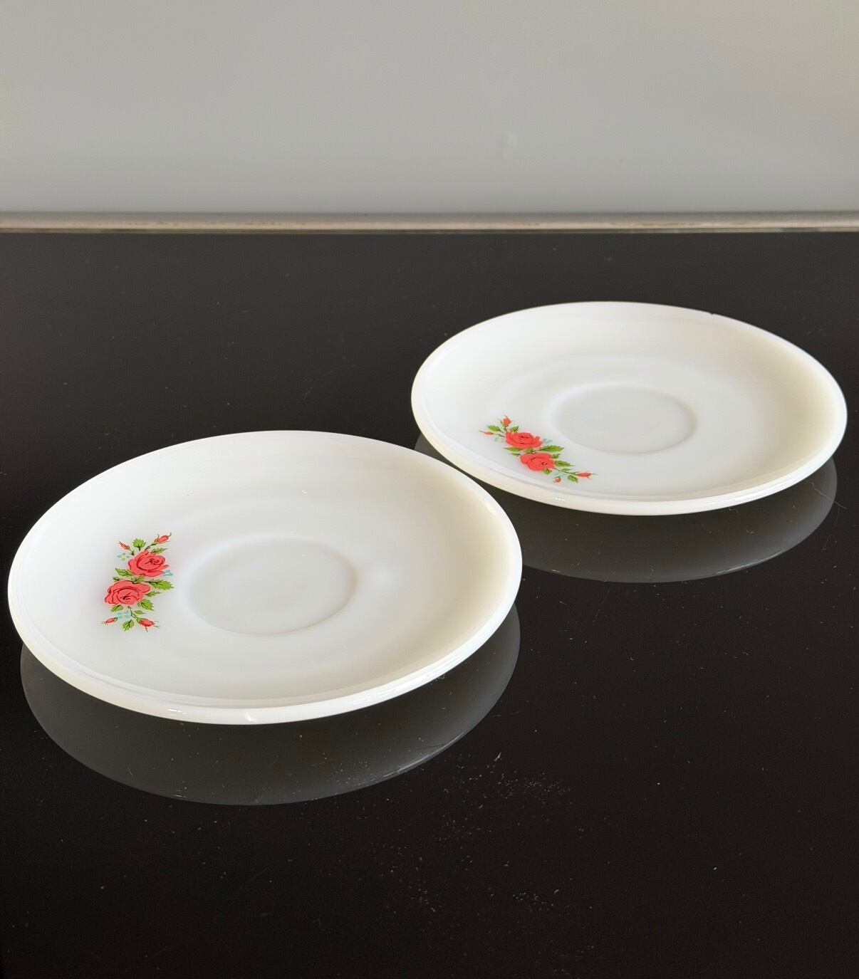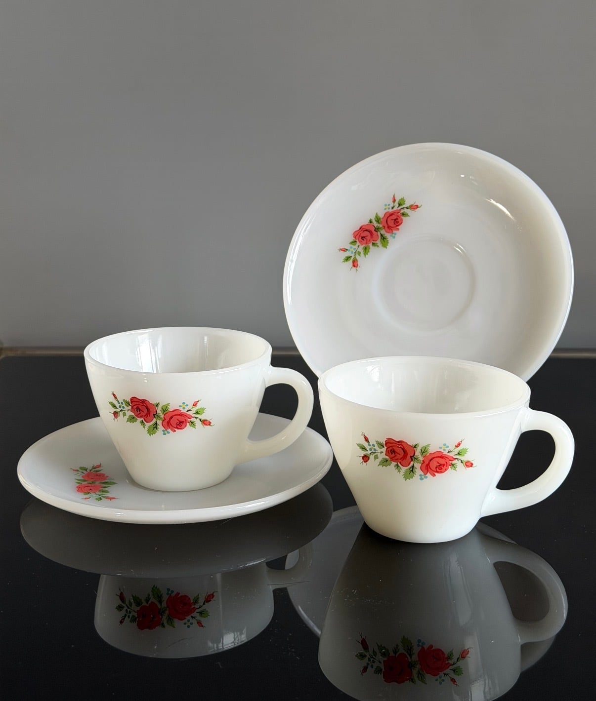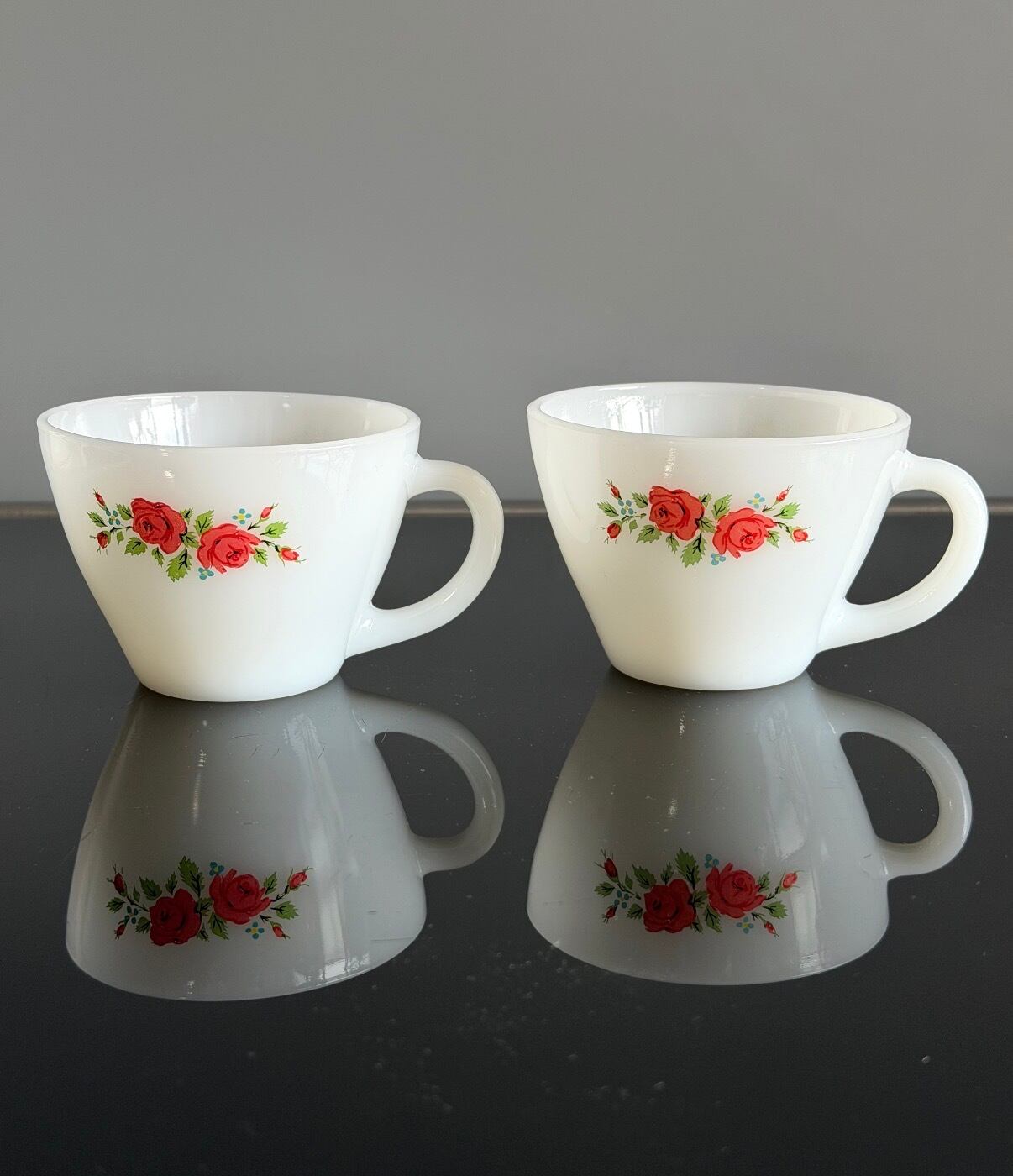 ファイヤーキング 花柄カップ&ソーサー ヴィンテージマグ ミルクガラス 2セット
