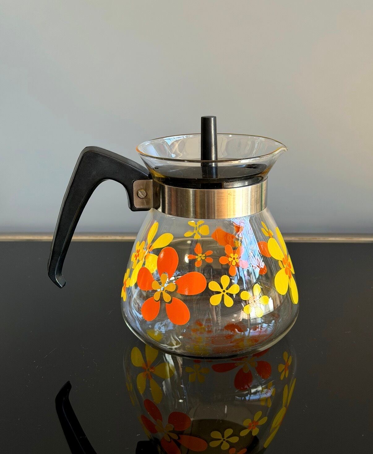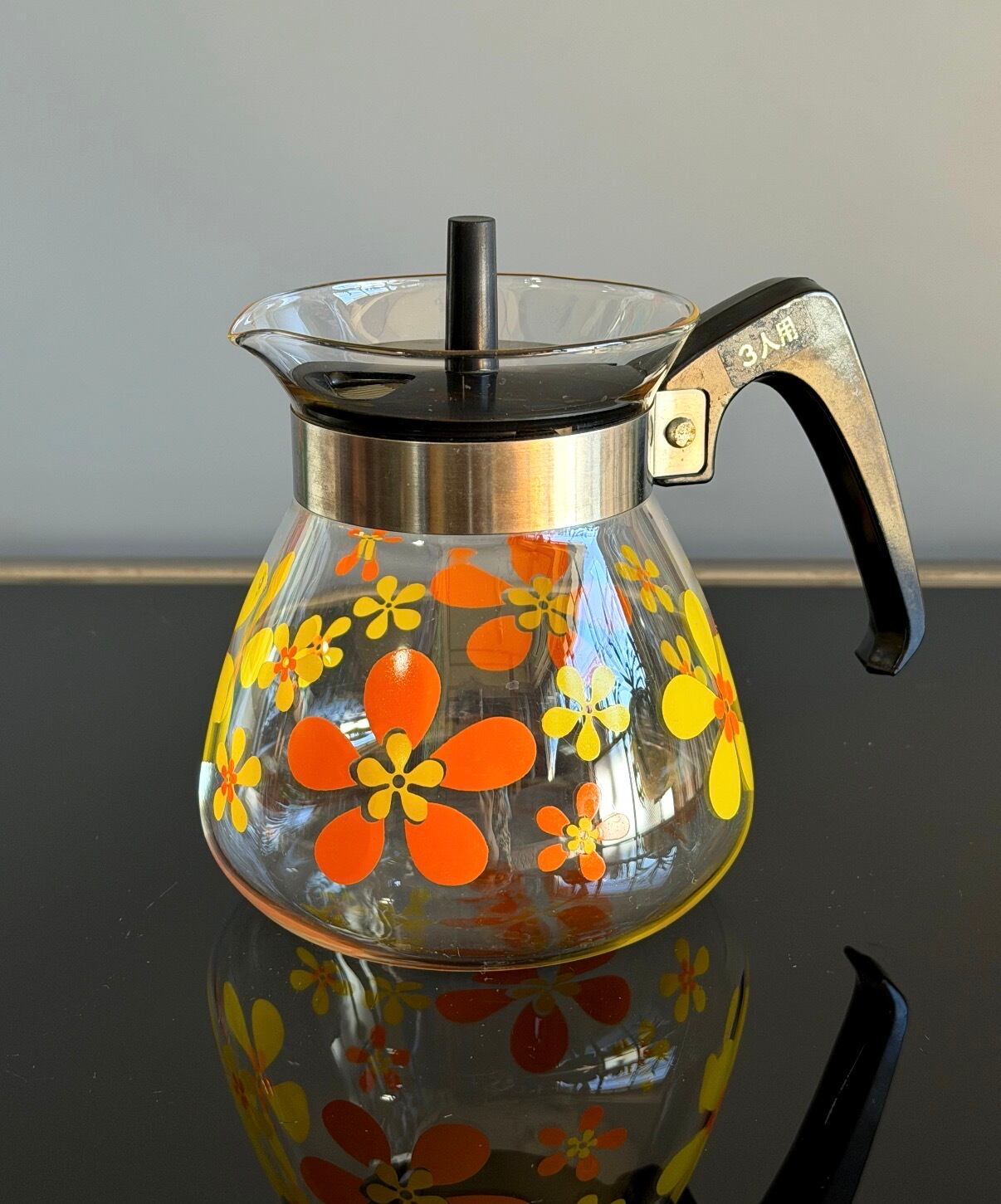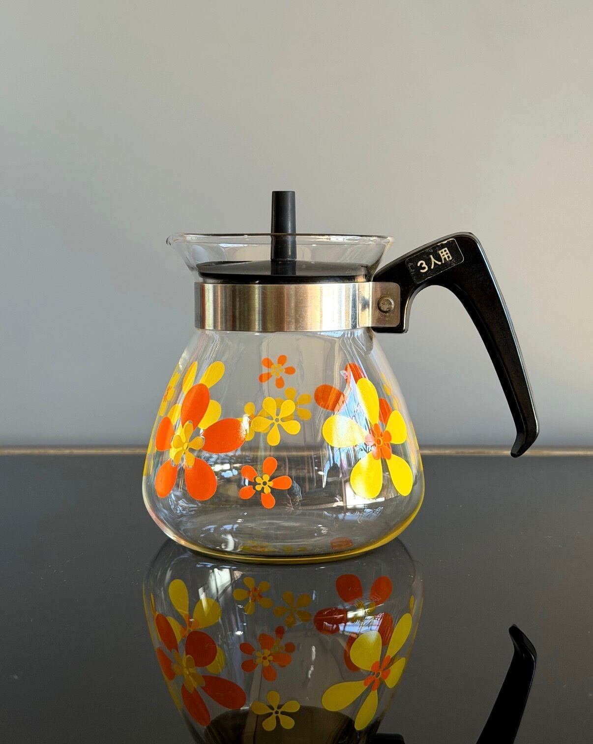 昭和レトロポップ 花柄ティーポット 耐熱ガラス デイジー柄 ガラスポット レア