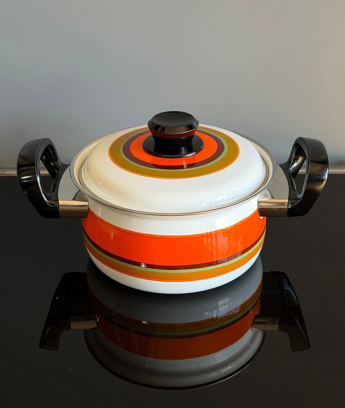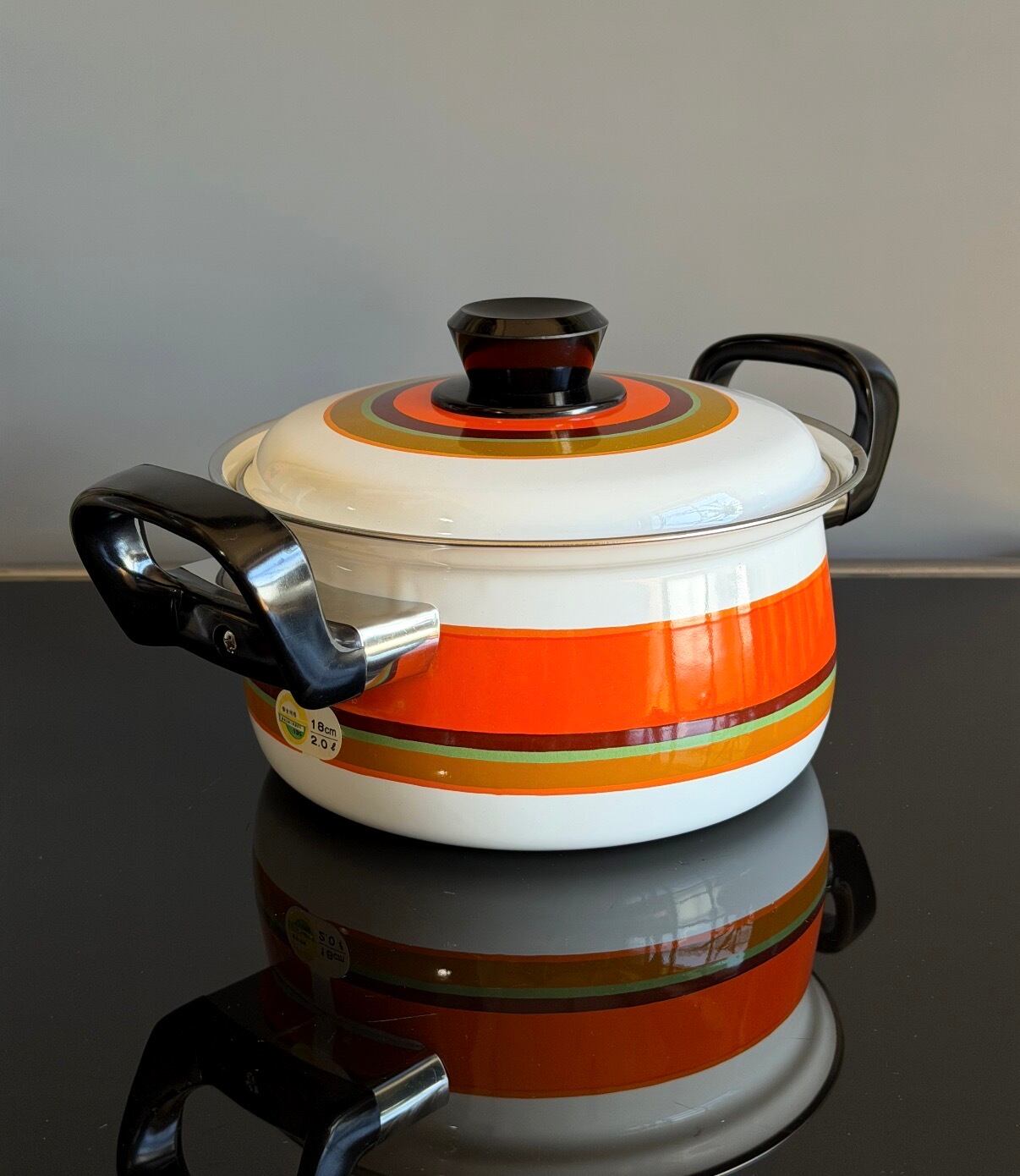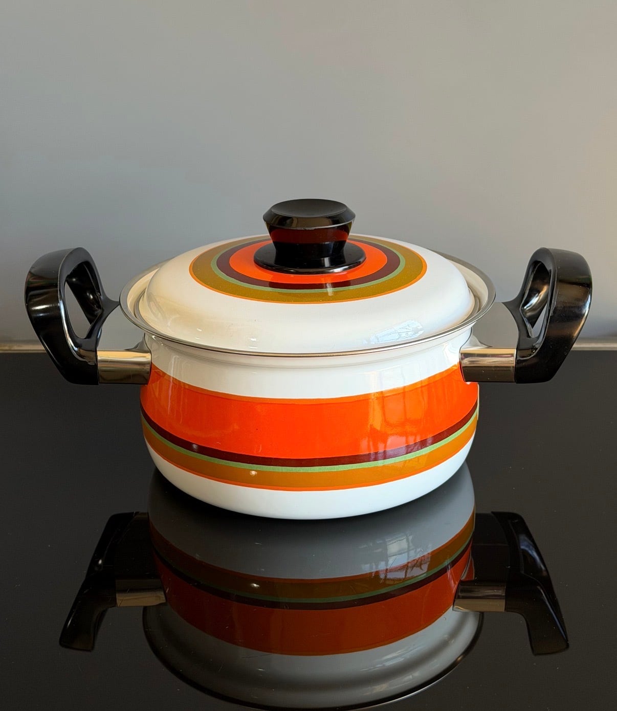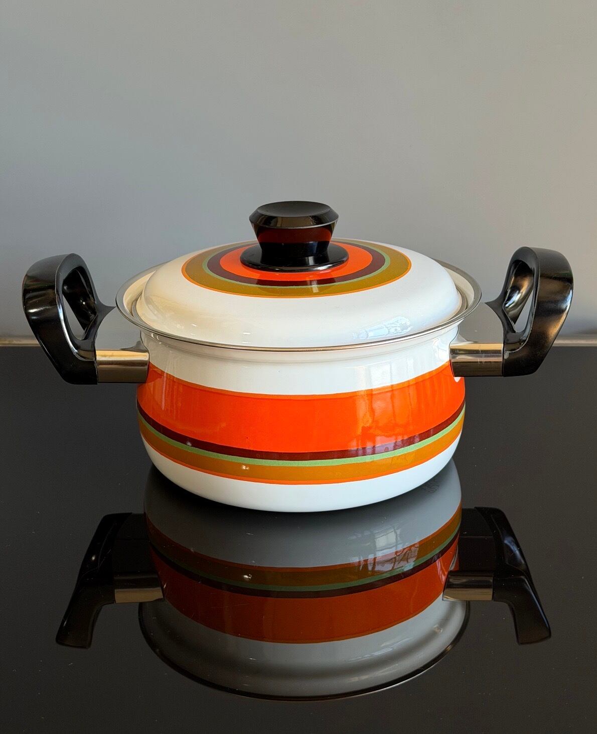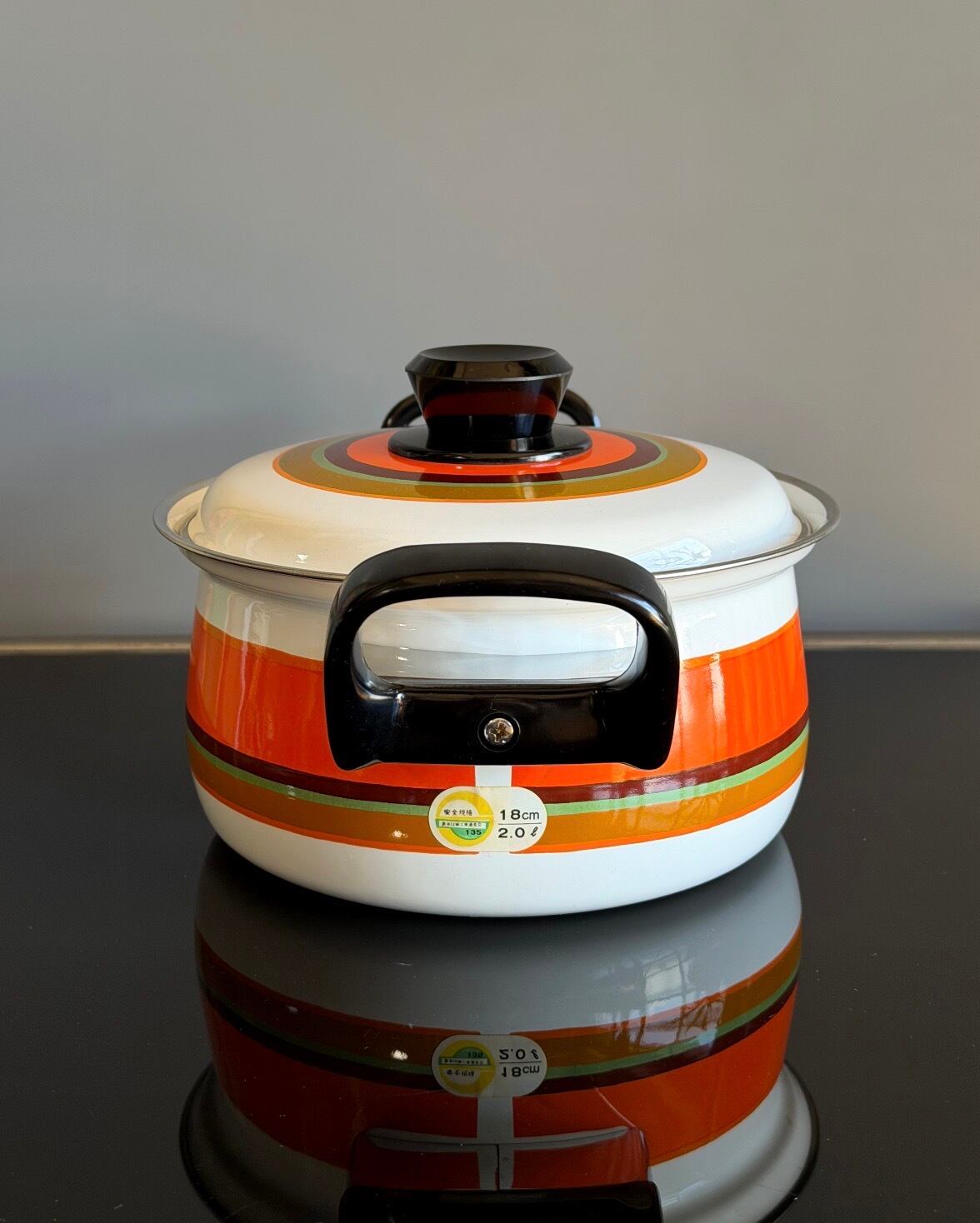 ミッドセンチュリー ホーロー鍋 両手鍋 琺瑯 サークルライン 昭和レトロ 北欧風