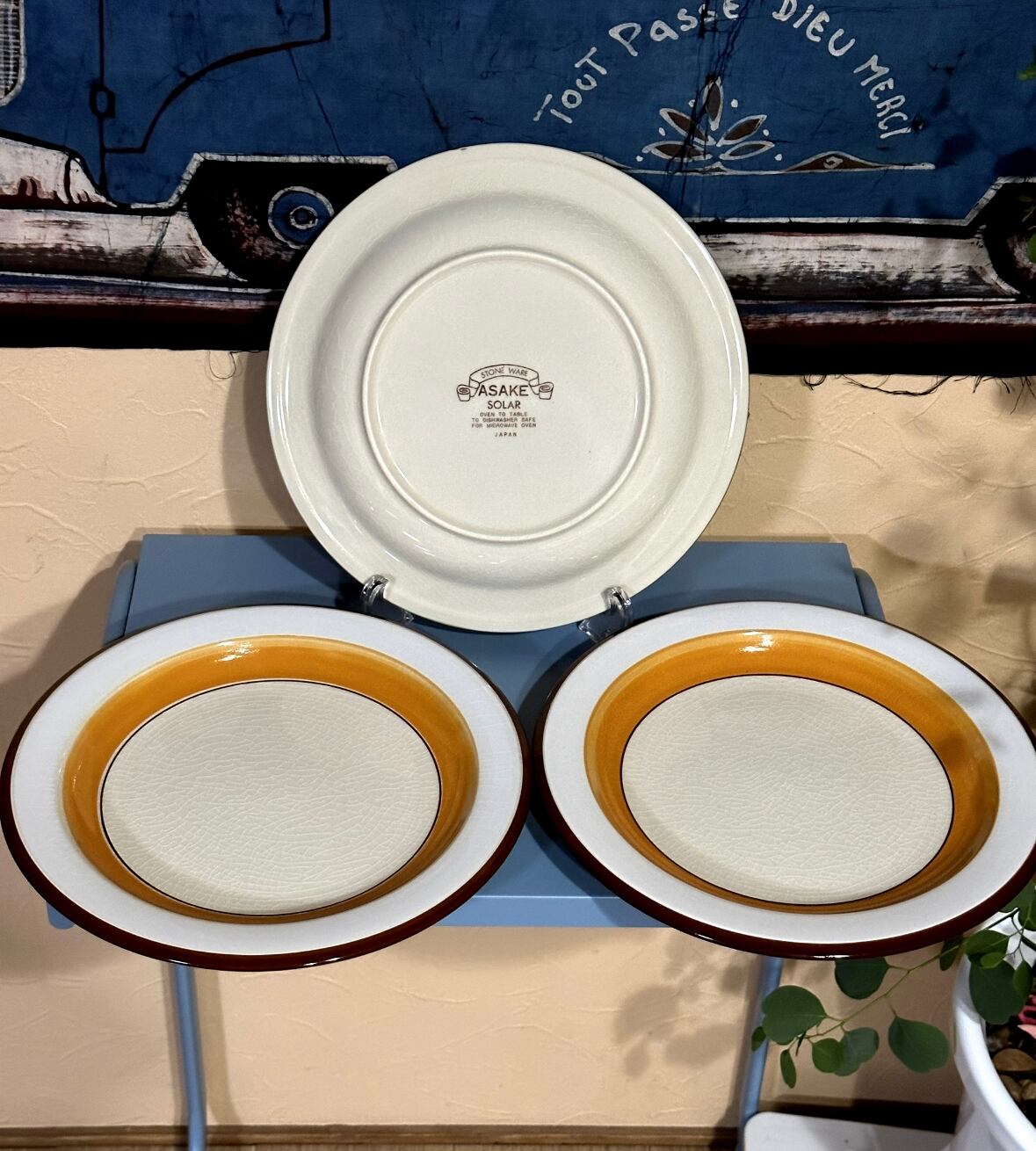 昭和レトロ ストーンウェア 大皿 サークルライン 3枚セット ヴィンテージ