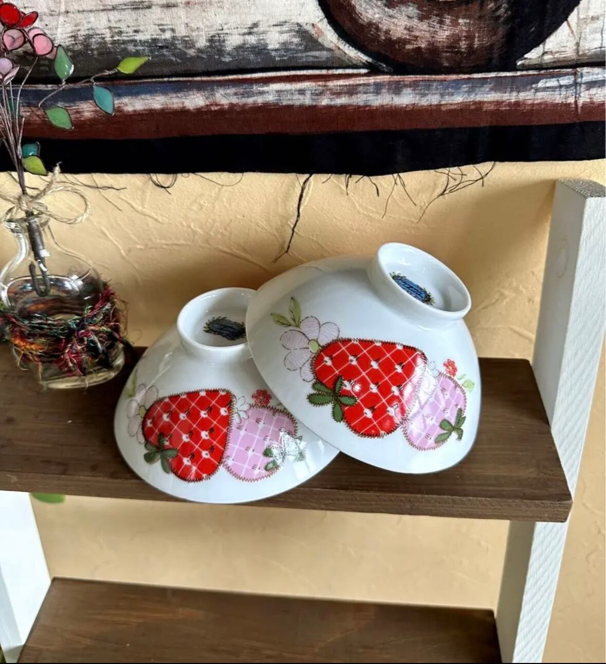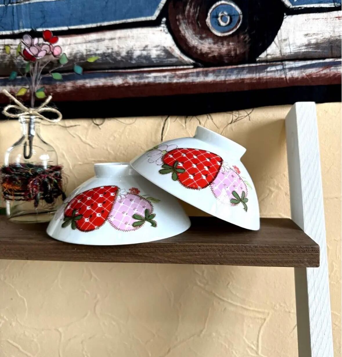 昭和レトロ いちご柄 茶碗 レトロポップ ヴィンテージ ストロベリー 2個セット