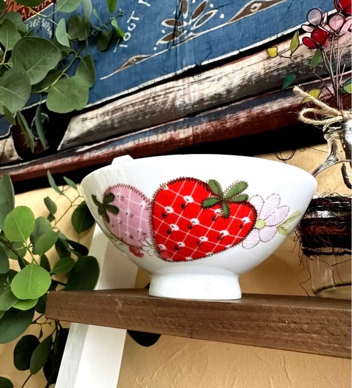 昭和レトロな雰囲気漂ういちご柄の茶碗です。
