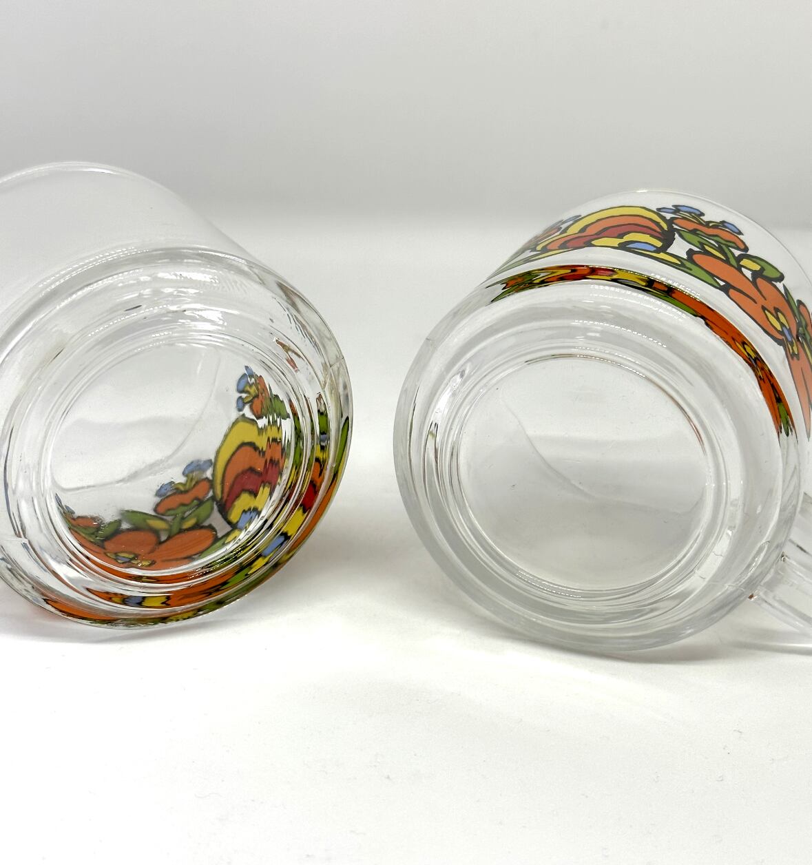 ヴィンテージ 花柄ティーカップ 耐熱ガラスマグ スタッキングマグ 昭和レトロ