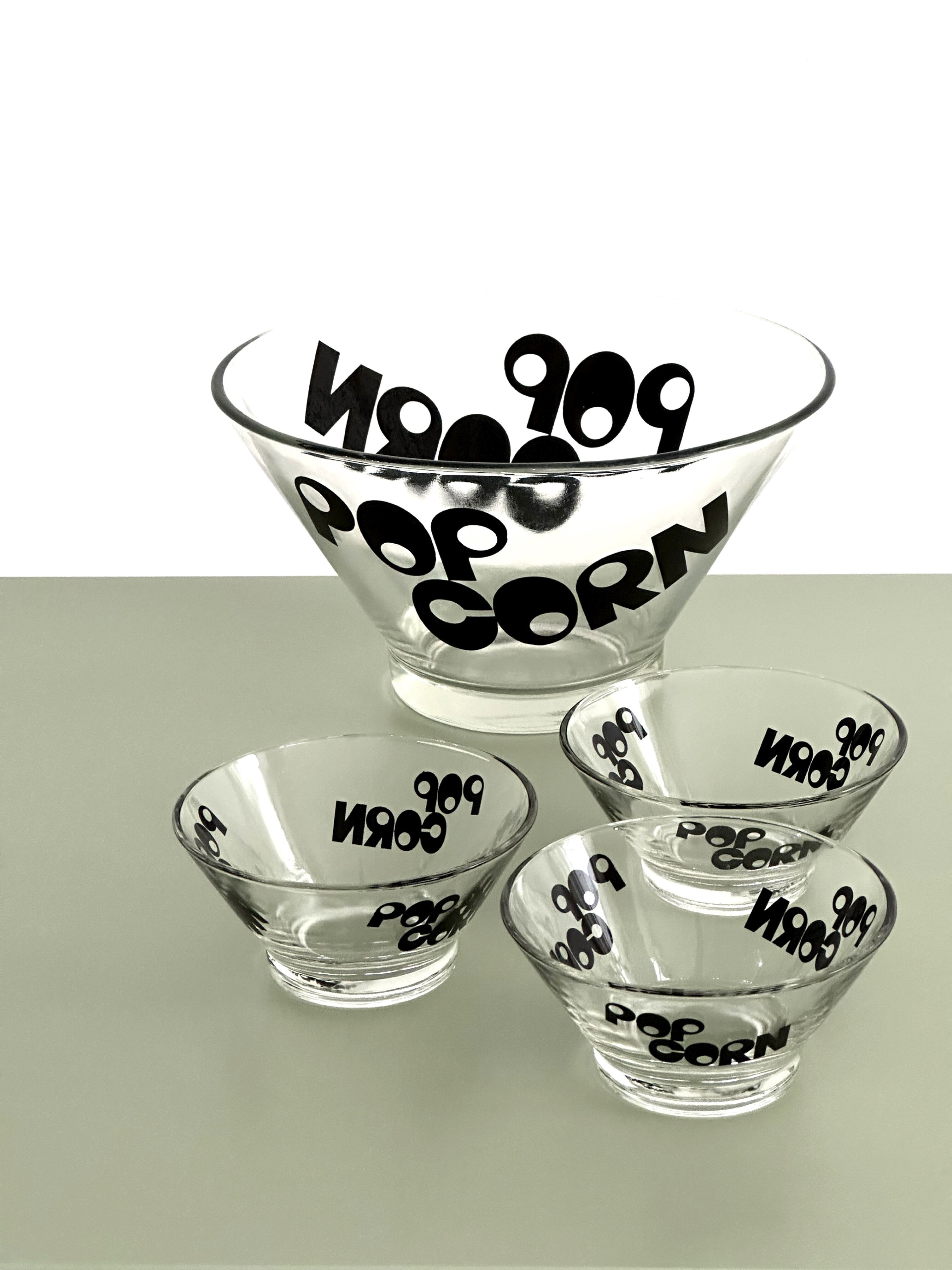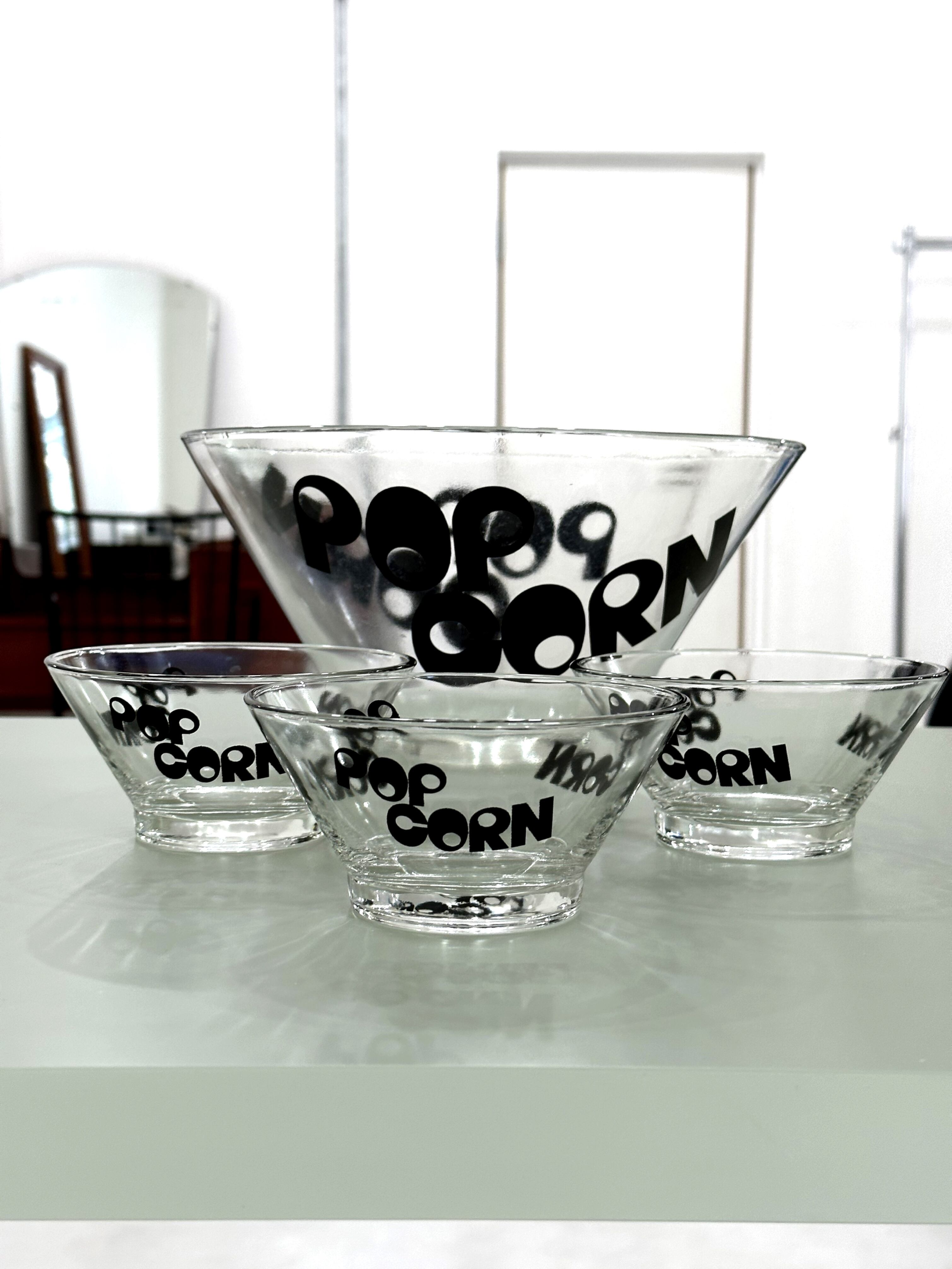 ポップコーンガラスボウルの4点セットです。