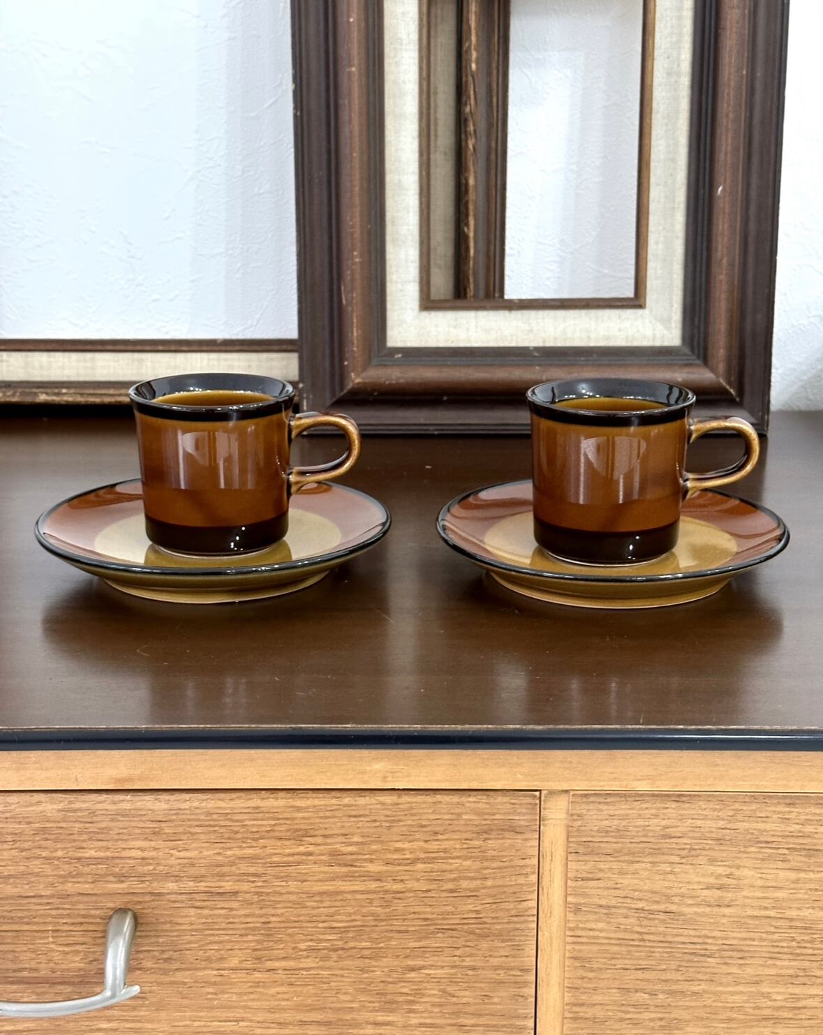 ミッドセンチュリー カップ&ソーサー サークルライン 2客セット ヴィンテージマグ 昭和レトロ