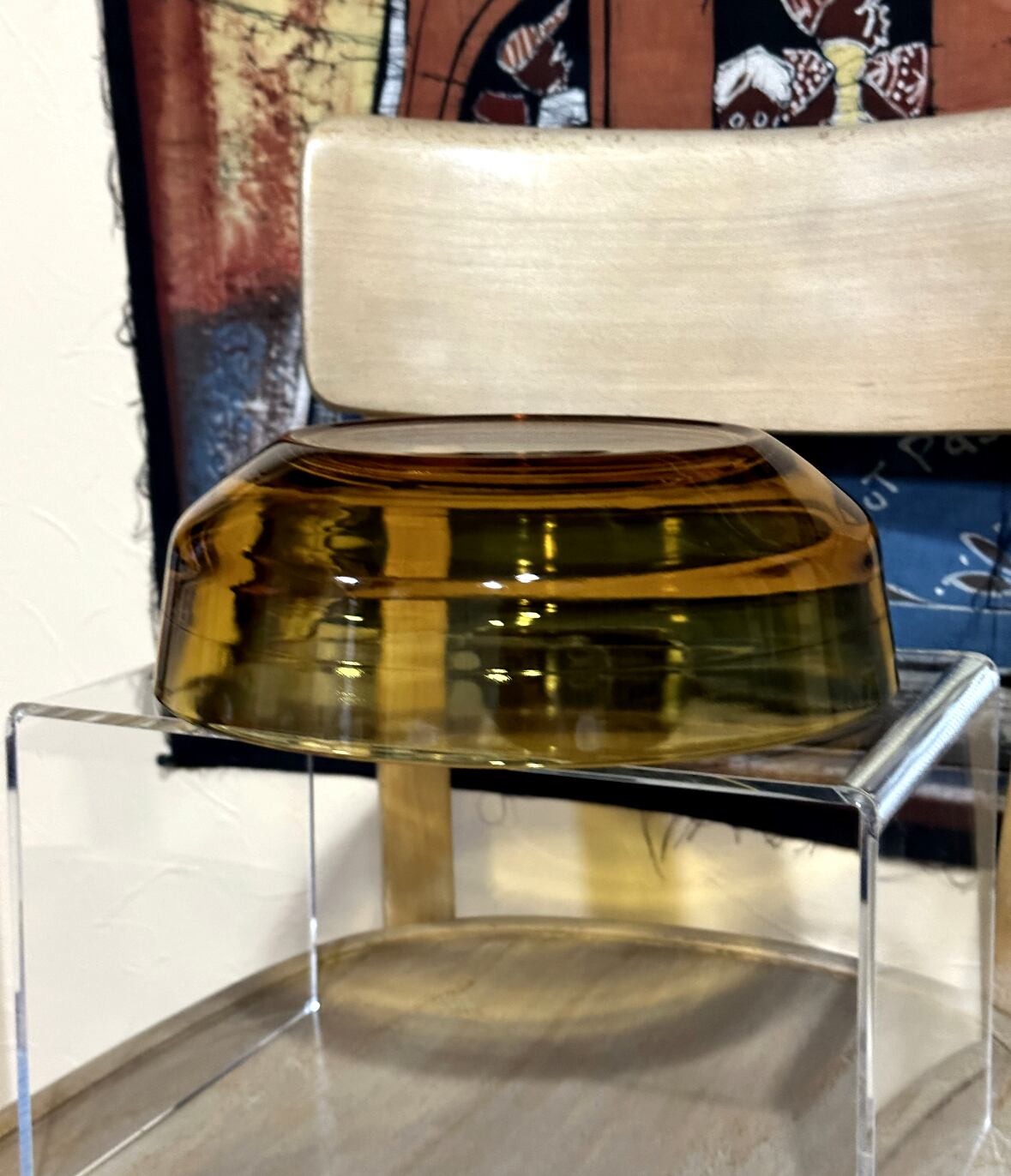 ヴィンテージ 大皿 深皿 アンバーガラス 飴色 レア品 琥珀色 昭和レトロ