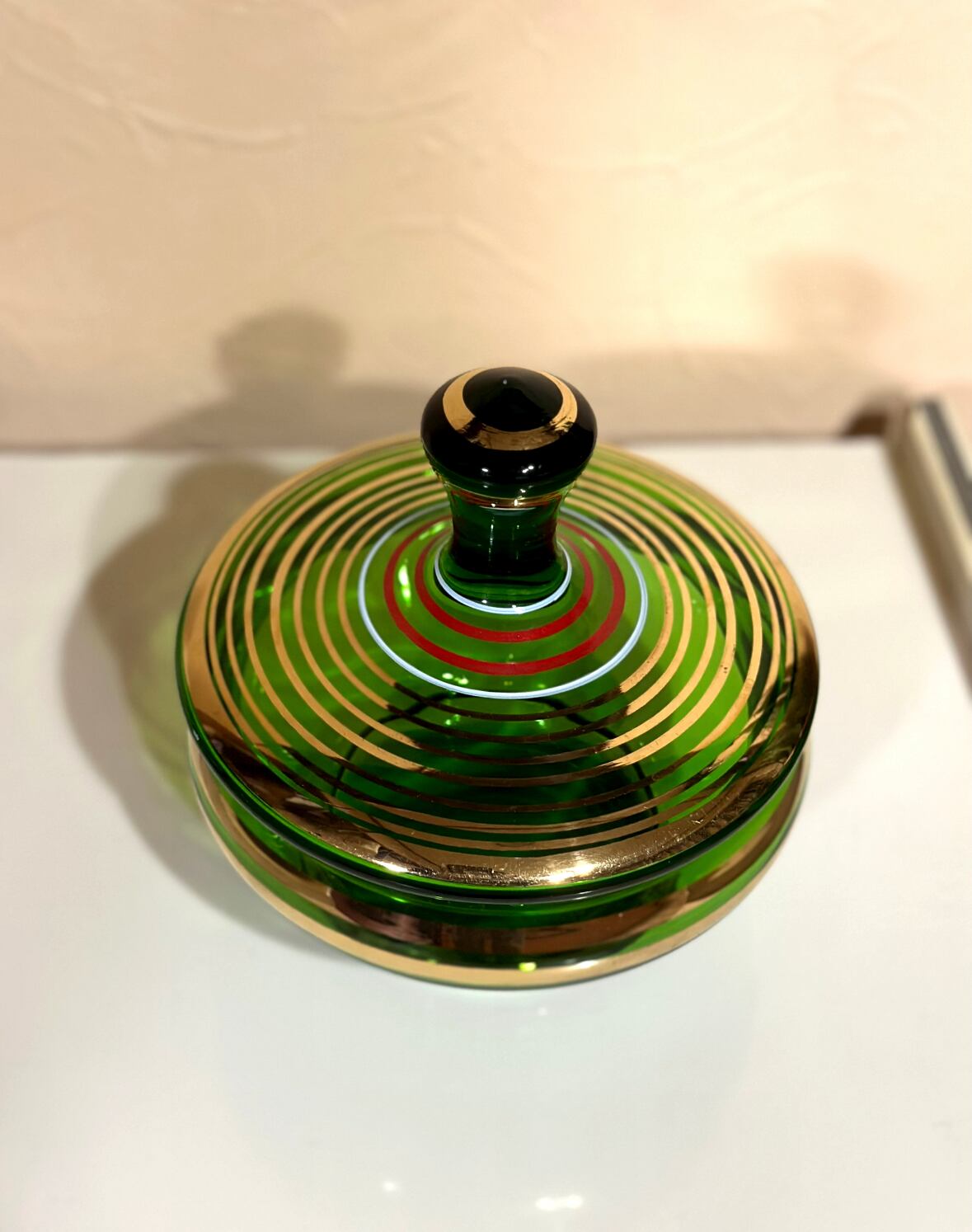 昭和レトロ ガラスキャニスター キャンディポット 蓋付き ボヘミアン 緑