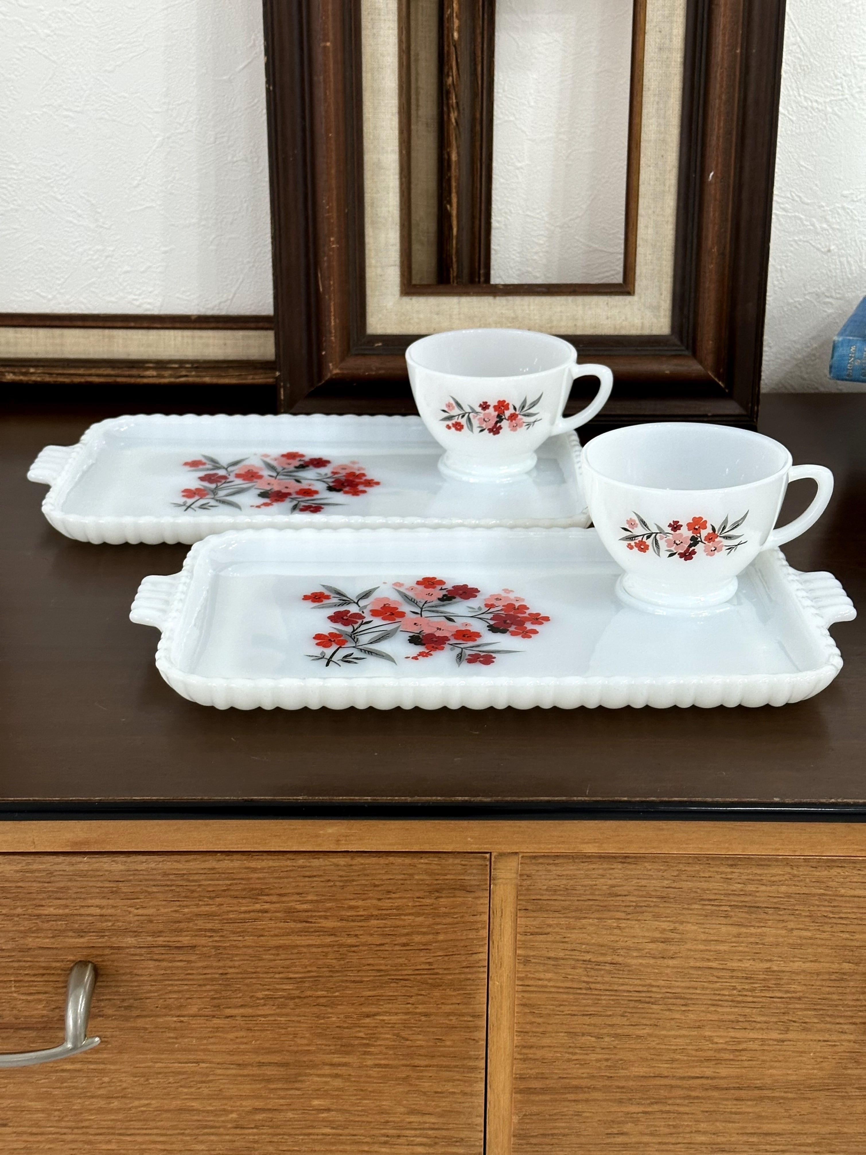 Fire-King プリムローズ スナックセット 2組セット ミルクガラス