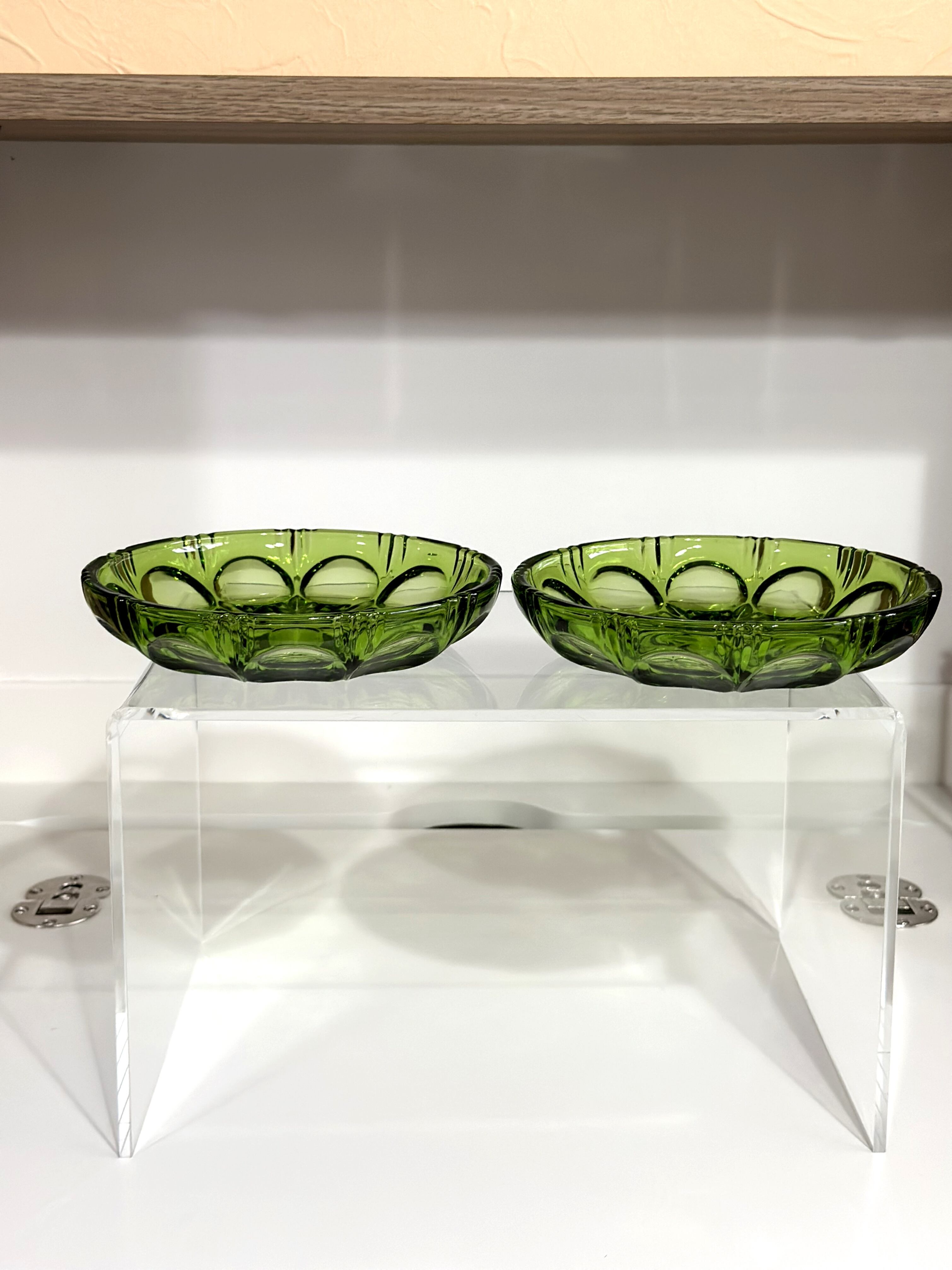 昭和レトロ ガラスプレート グリーンガラストレー 2枚セット ヴィンテージ