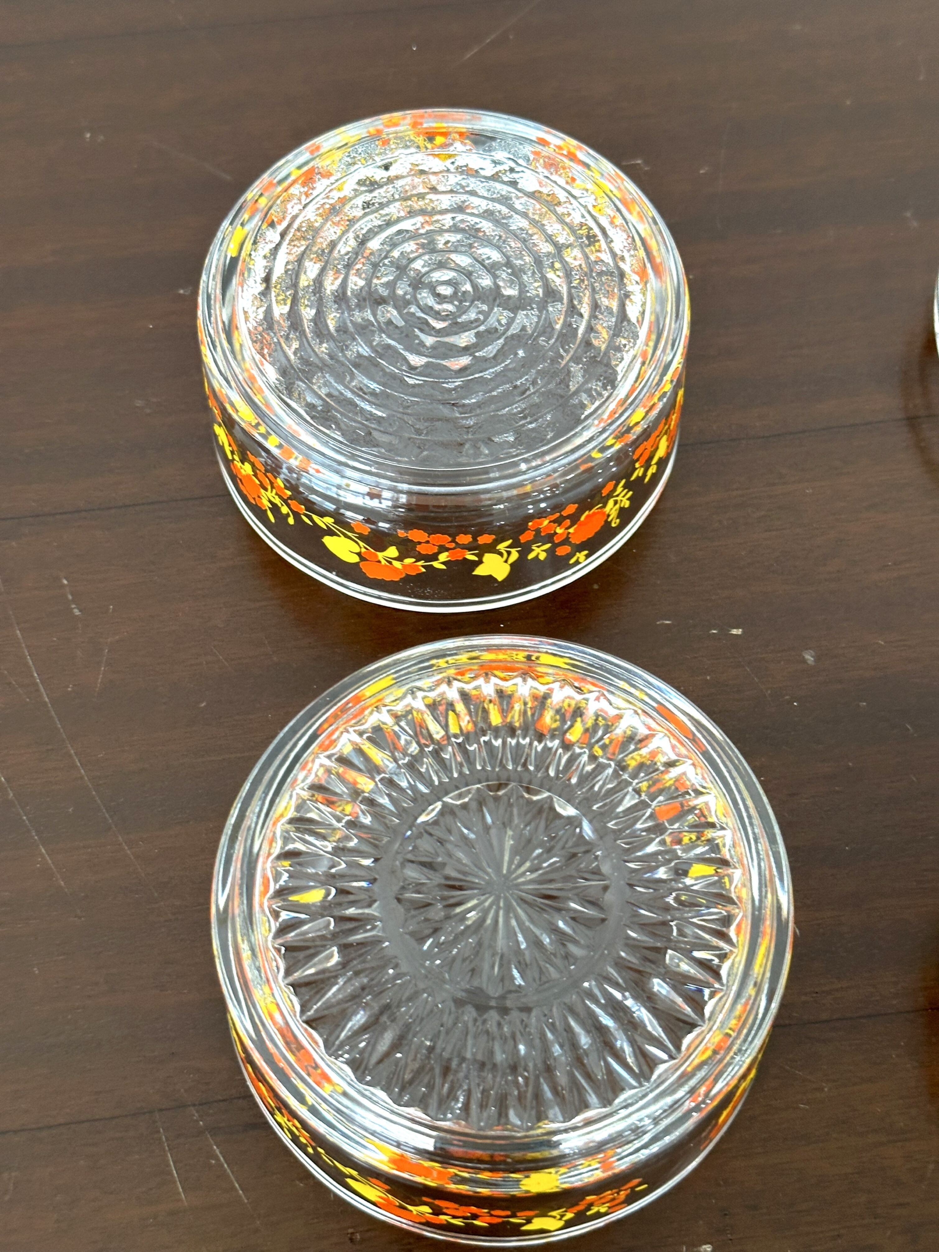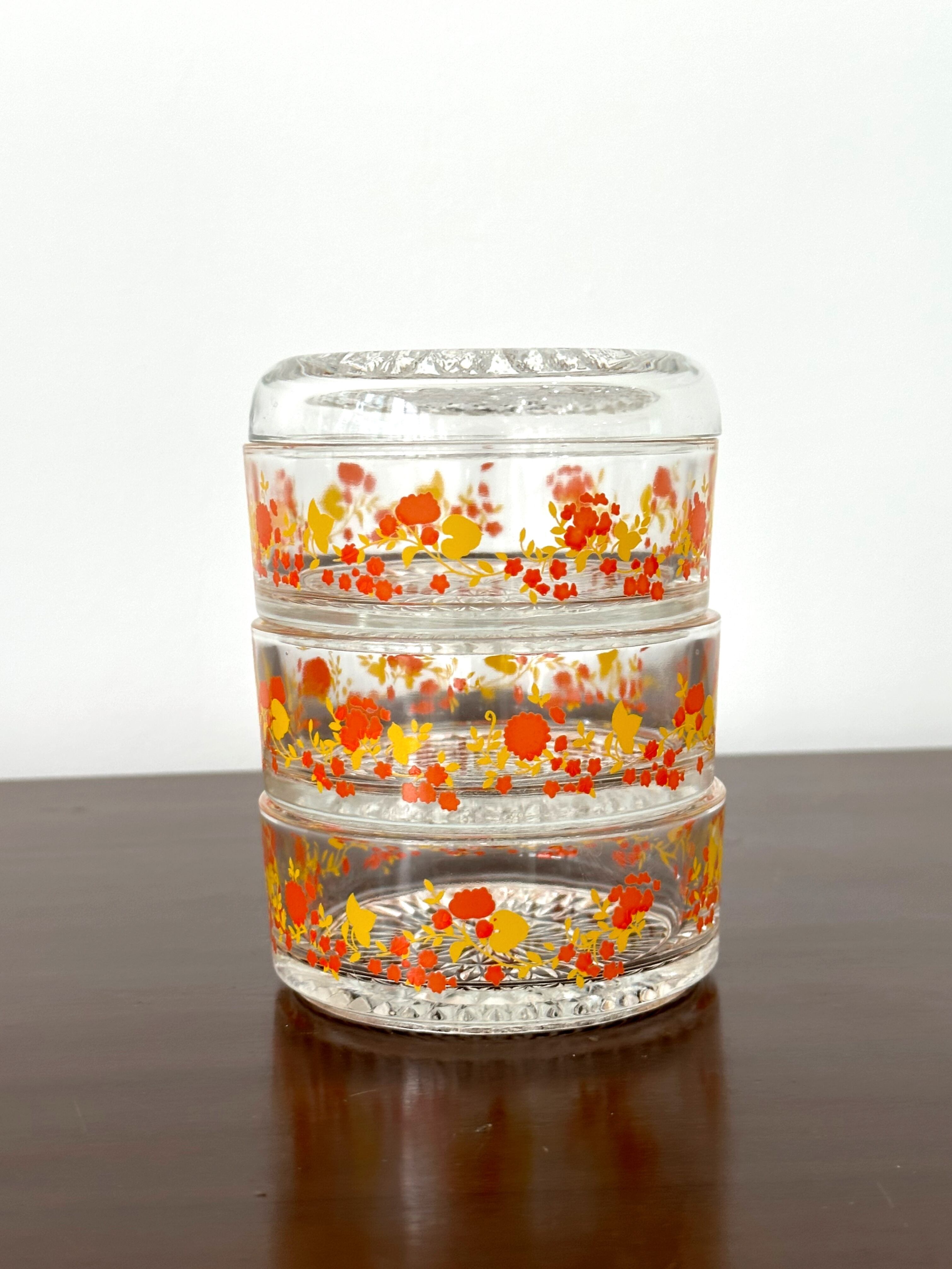 昭和レトロ 3段ガラスキャニスター キャンディポット 蓋付ガラス容器 小物入れ